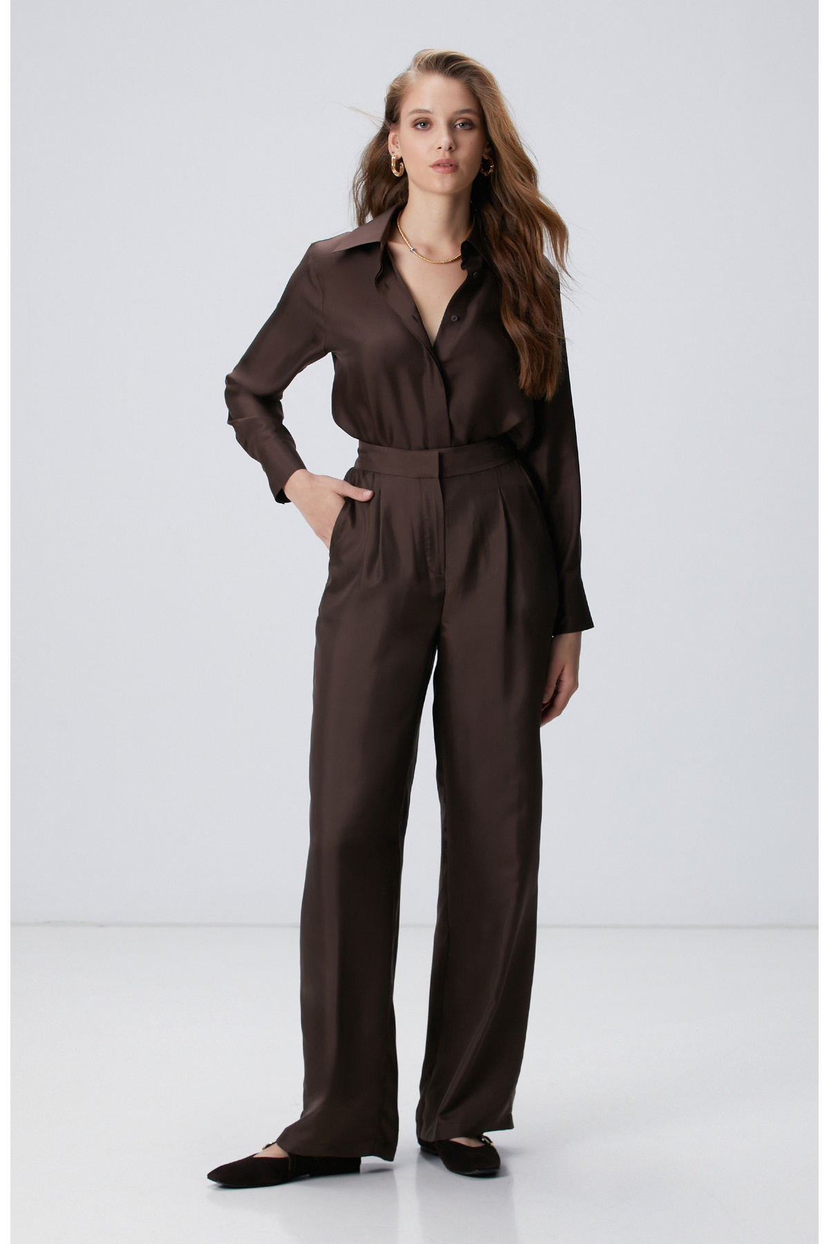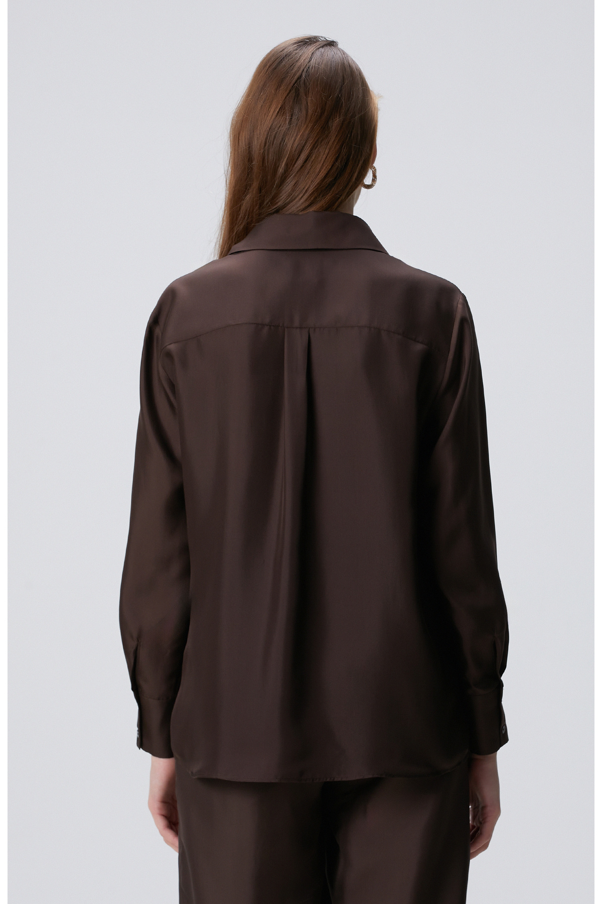 Limited Acı Kahve İpek Twill Gömlek Limited Acı Kahve İpek Twill Gömlek 1096399 XL