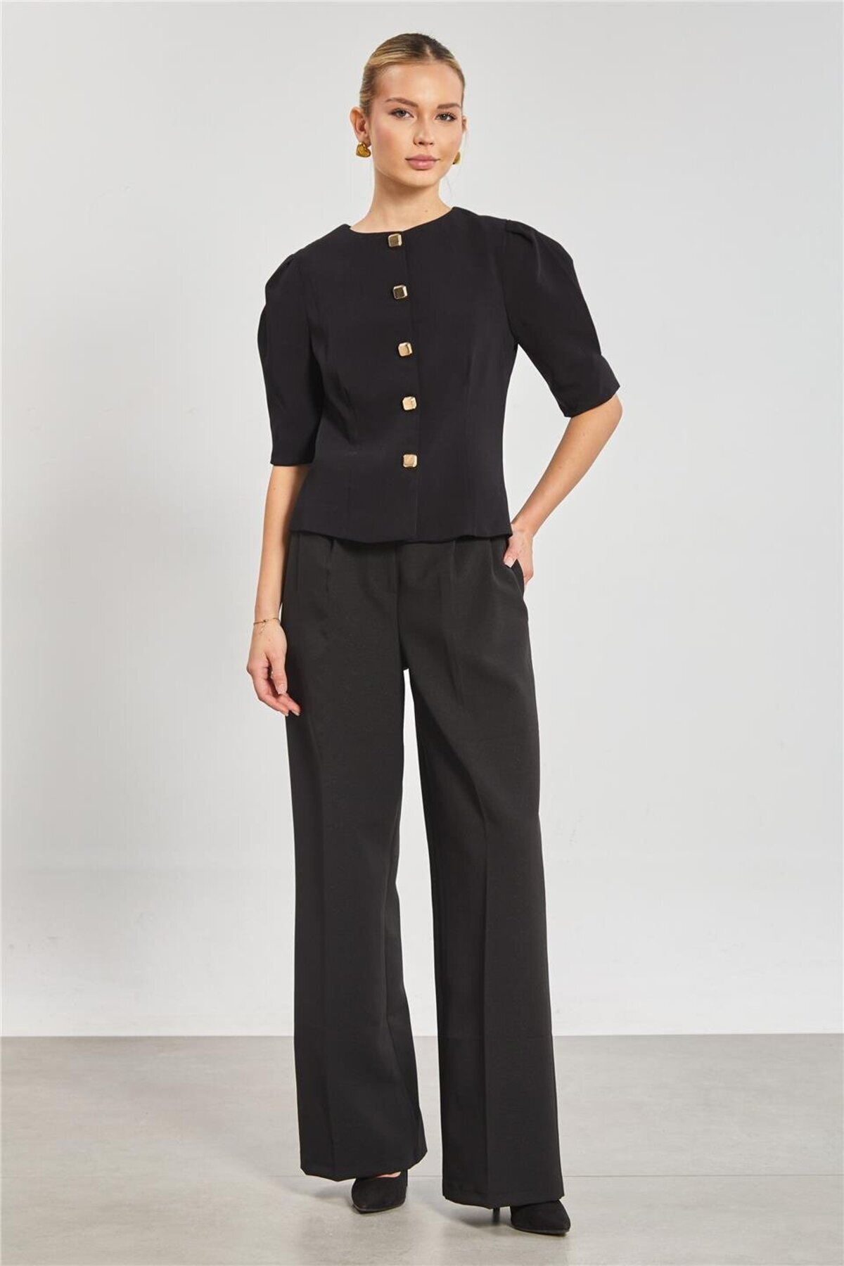 Kısa Kol Düğme Detay Kadın Ceket - Siyah Kısa Kol Düğme Detay Kadın Ceket - Siyah 1040-25M50010 XL