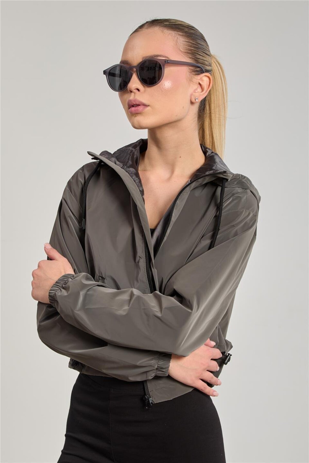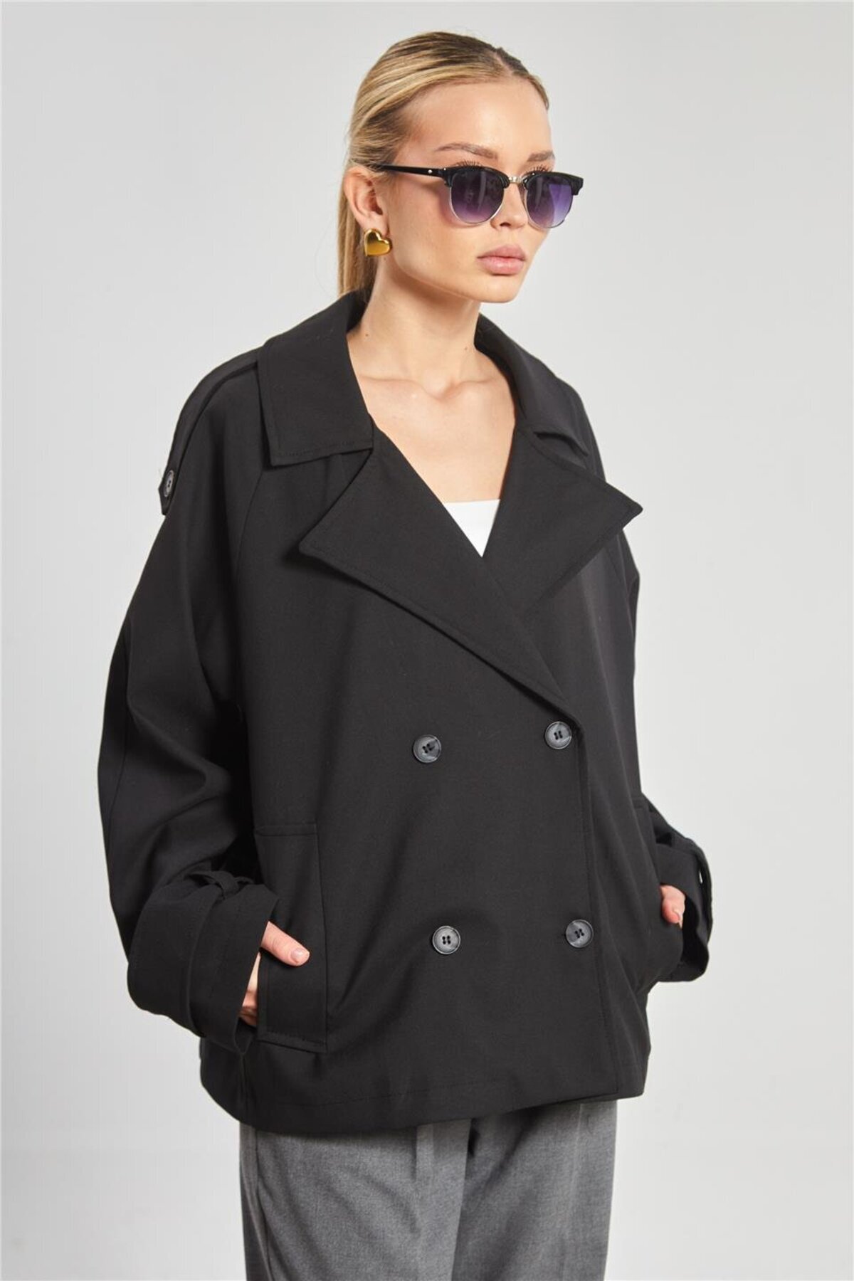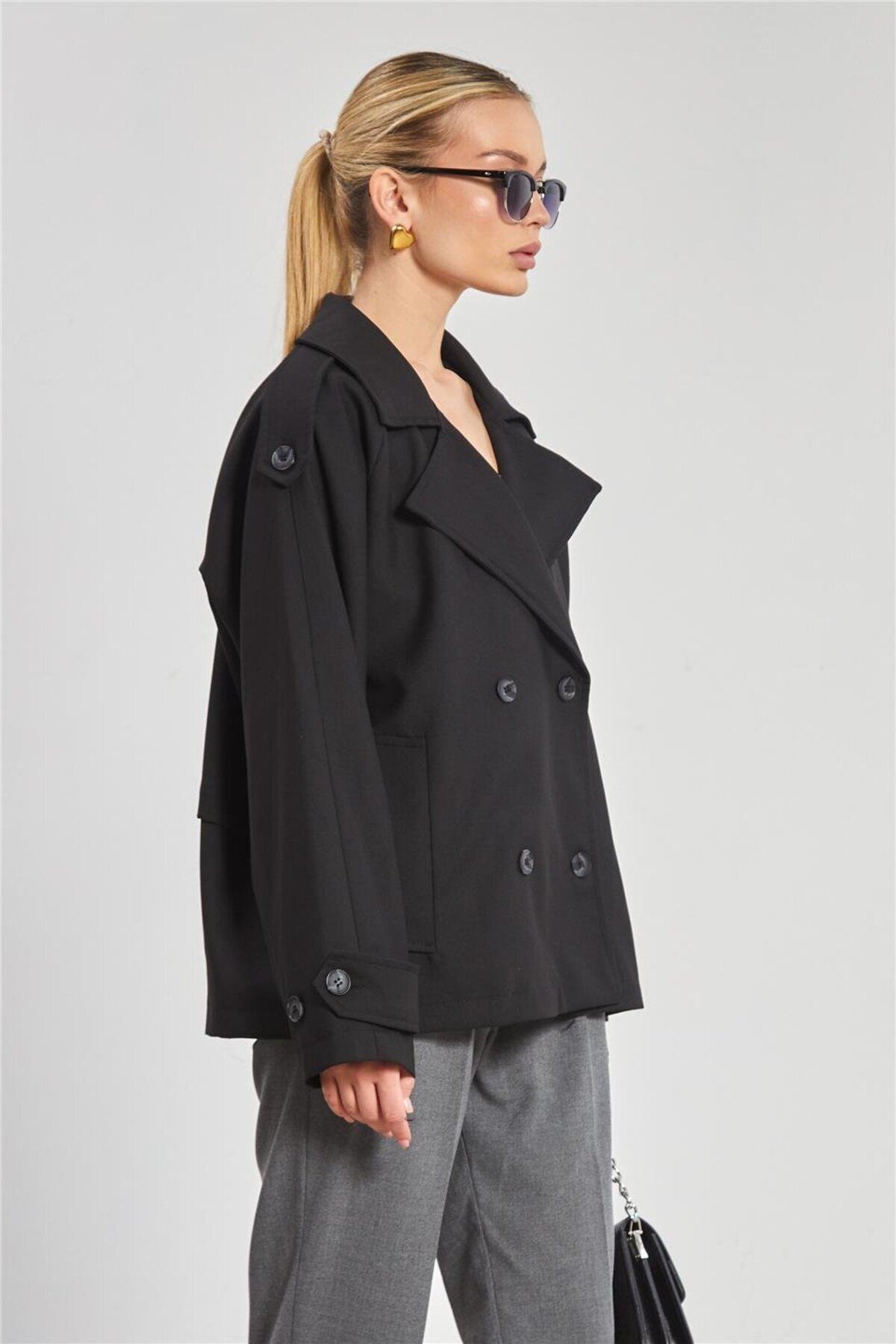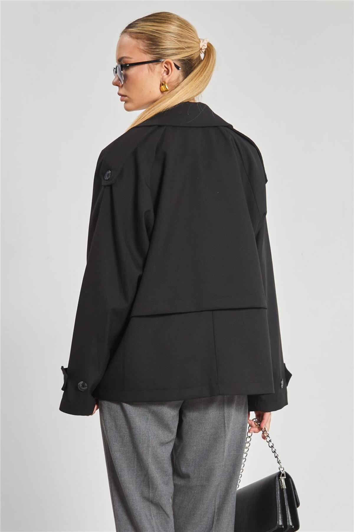 Kadın Kruvaze Yaka Kısa Oversize Ceket - Siyah Kadın Kruvaze Yaka Kısa Oversize Ceket - Siyah 1040-25M50013 Standart
