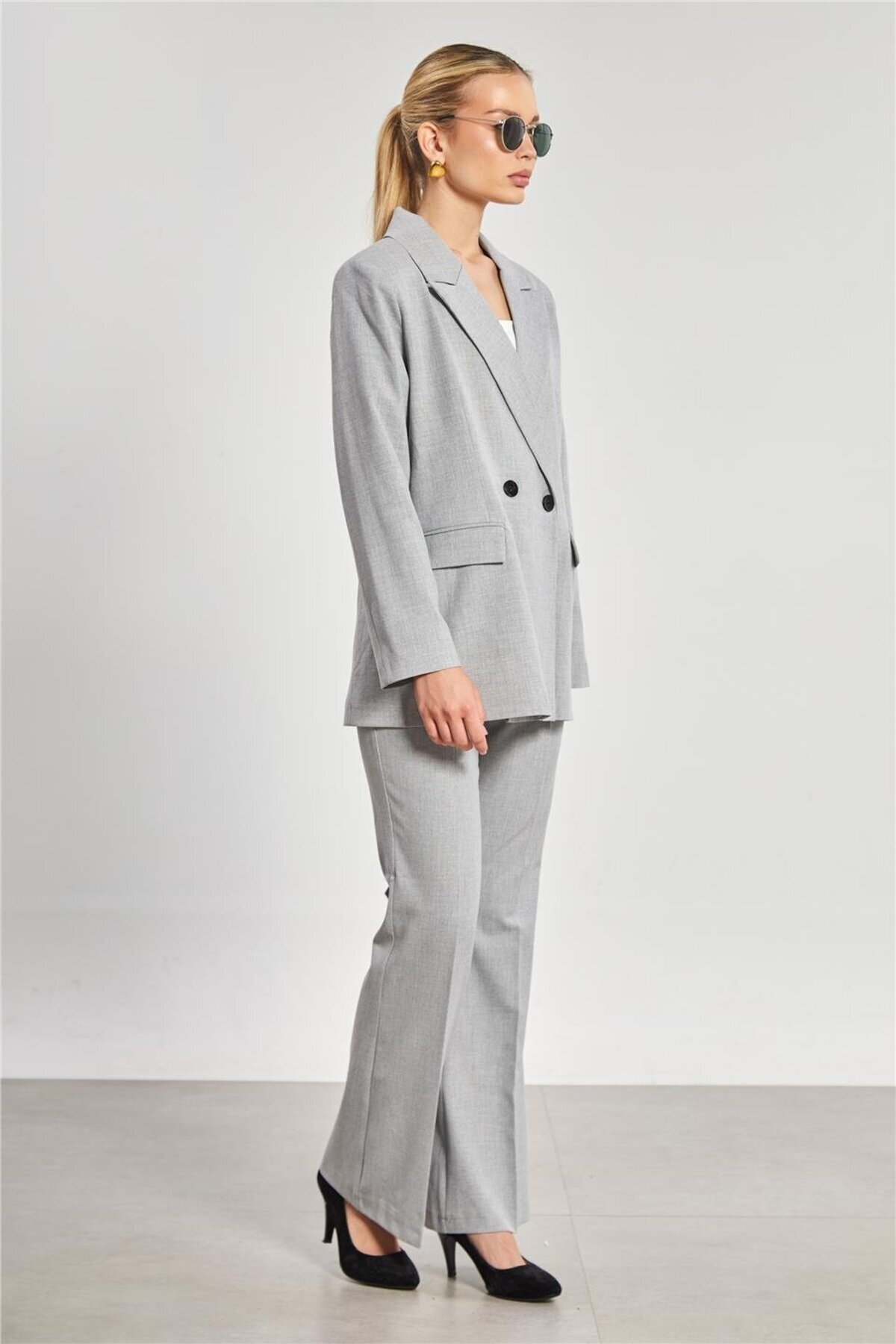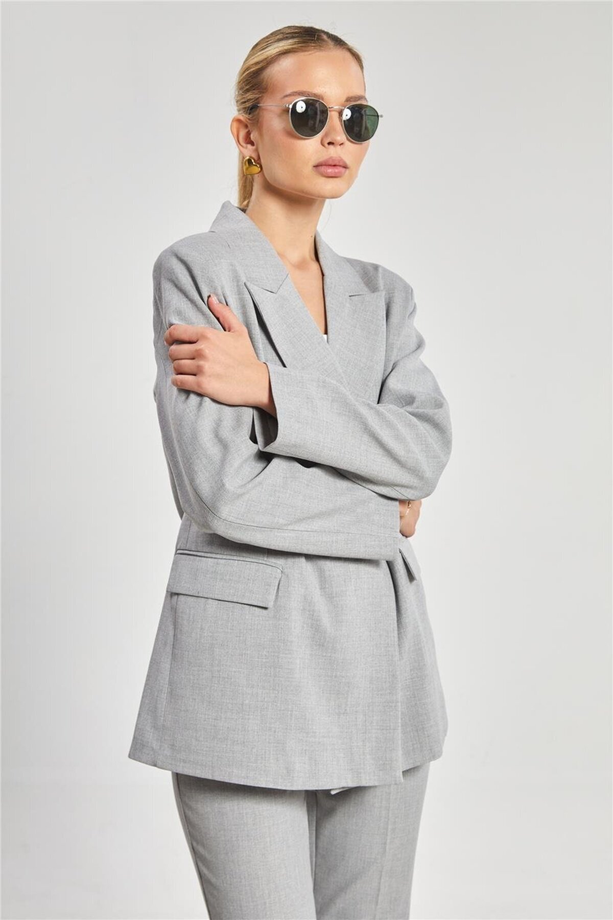 Kadın Çift Düğmeli Blazer Ceket - Açık Gri Kadın Çift Düğmeli Blazer Ceket - Açık Gri 992-25M50002 XL