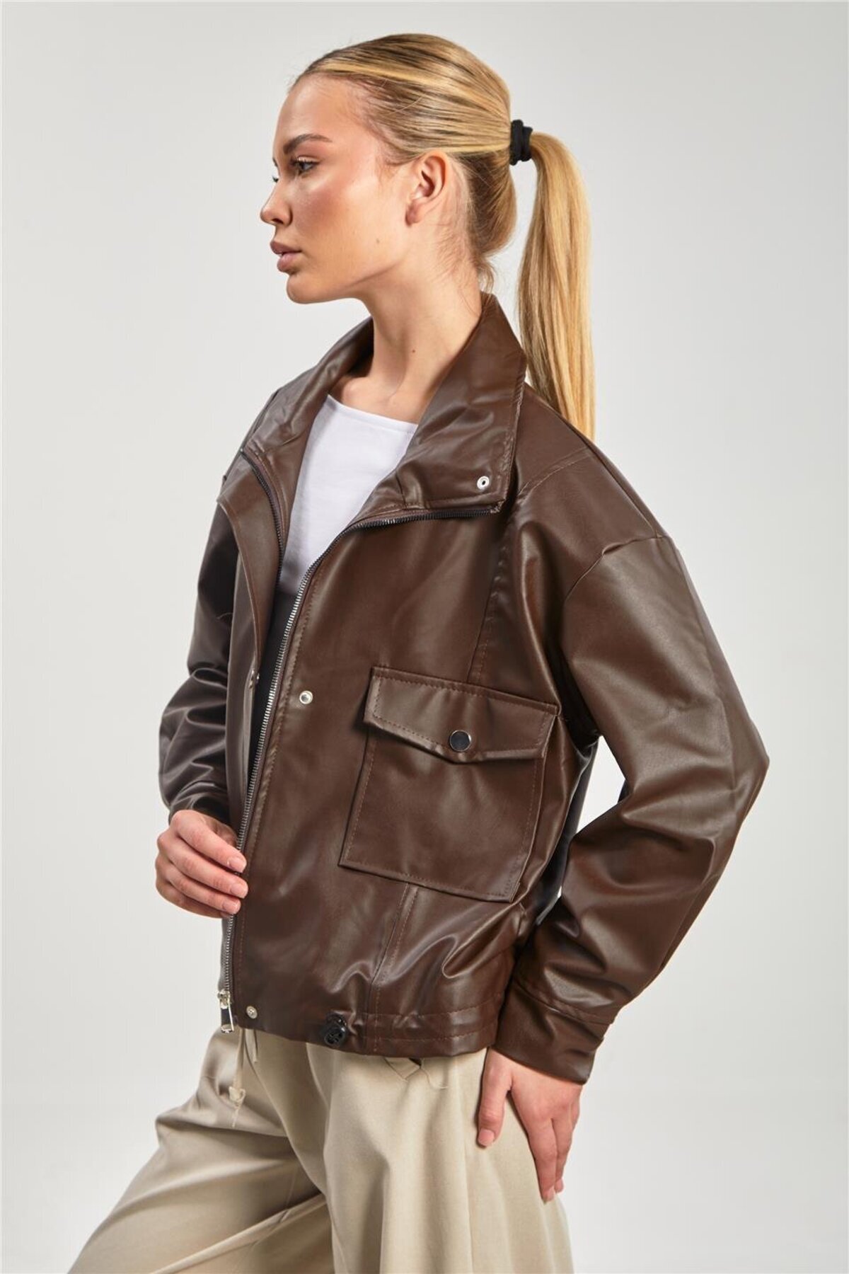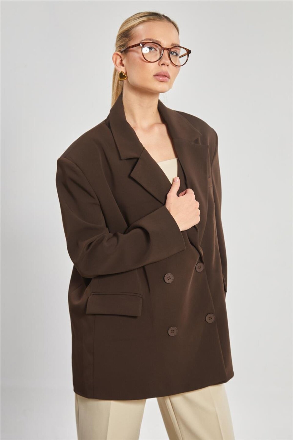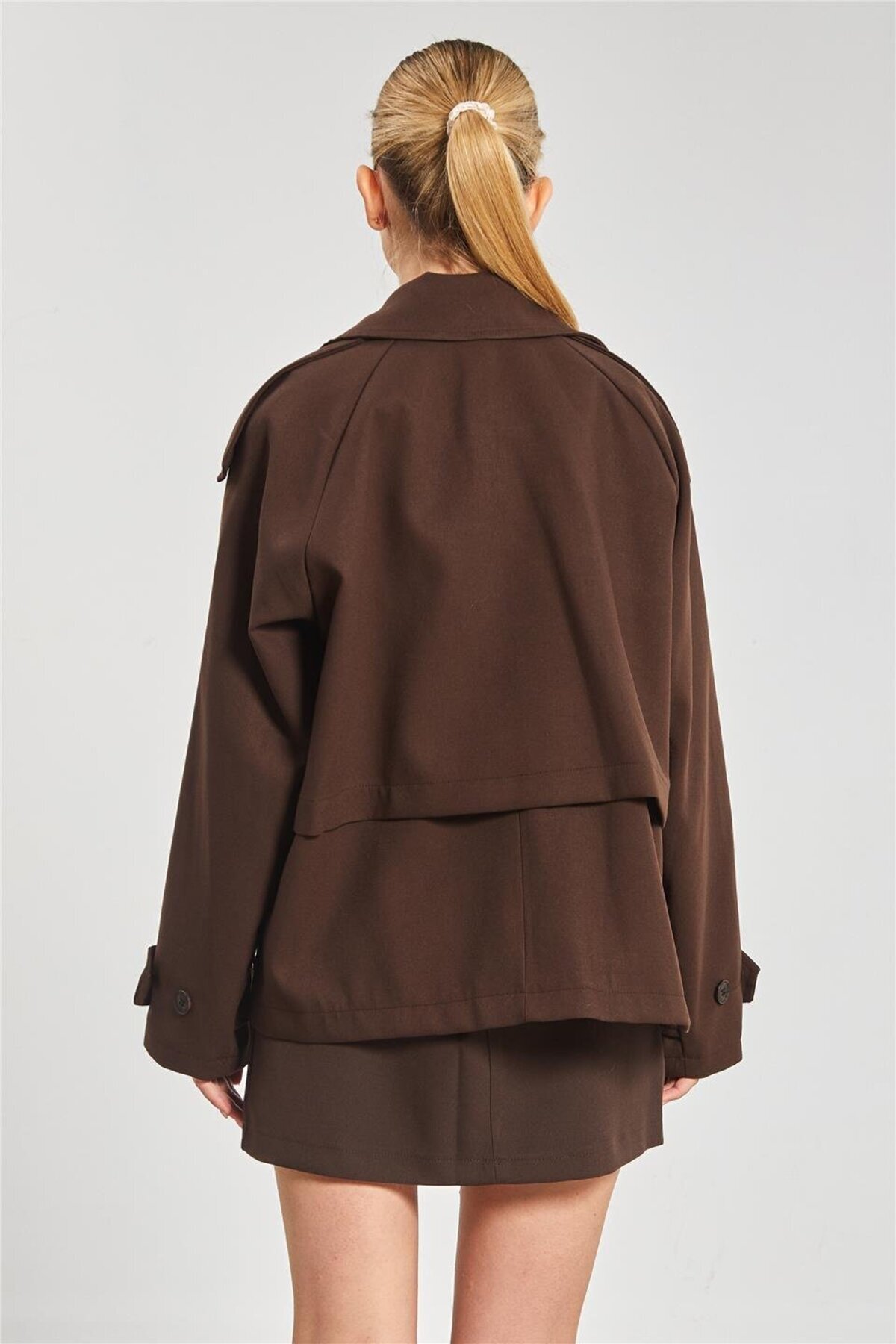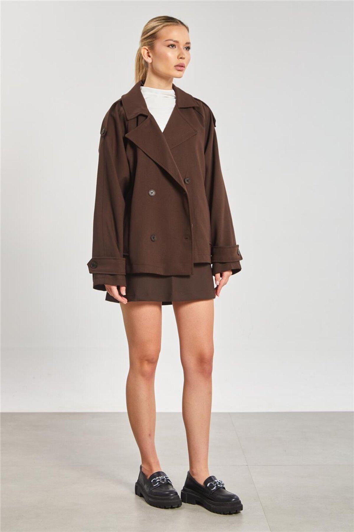 Kadın Kruvaze Yaka Kısa Oversize Ceket - Kahve Kadın Kruvaze Yaka Kısa Oversize Ceket - Kahve 1040-25M50013 Standart