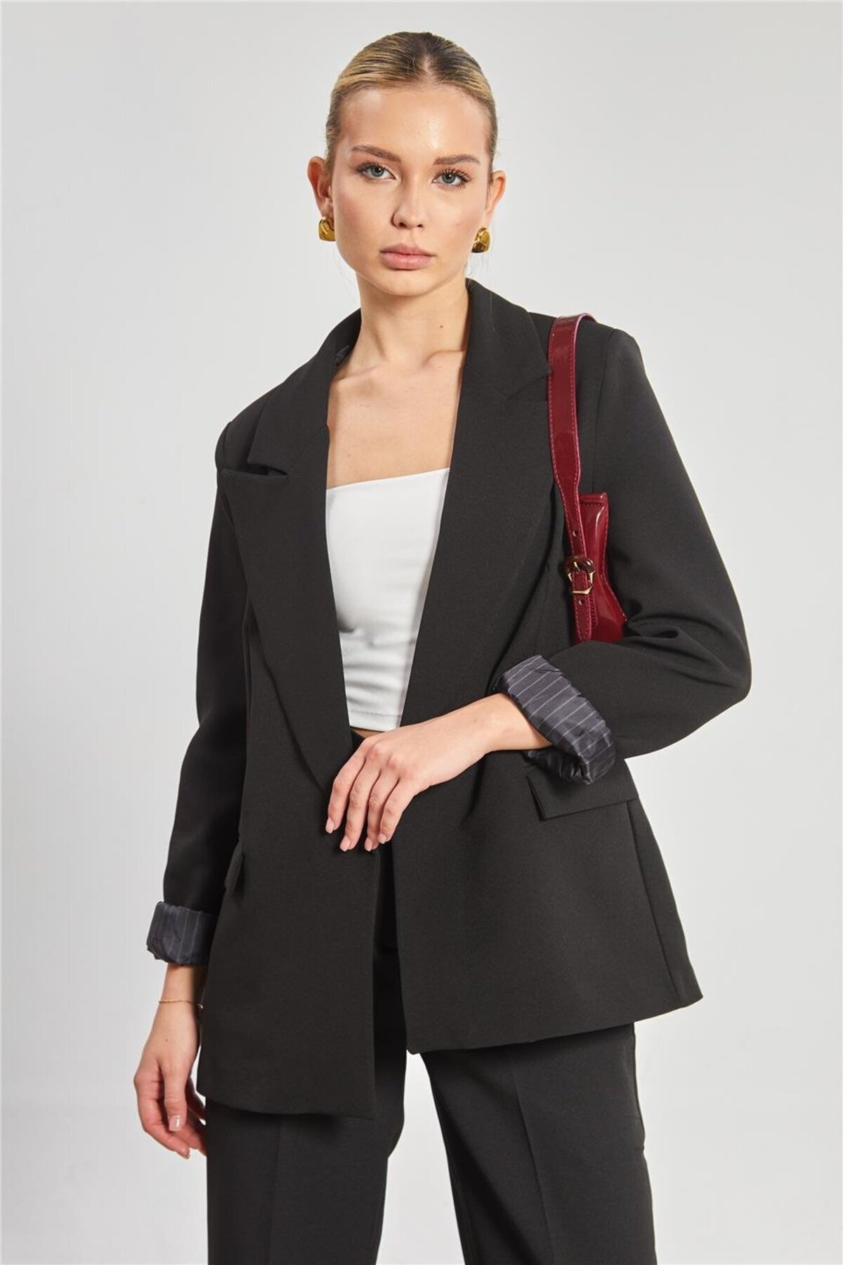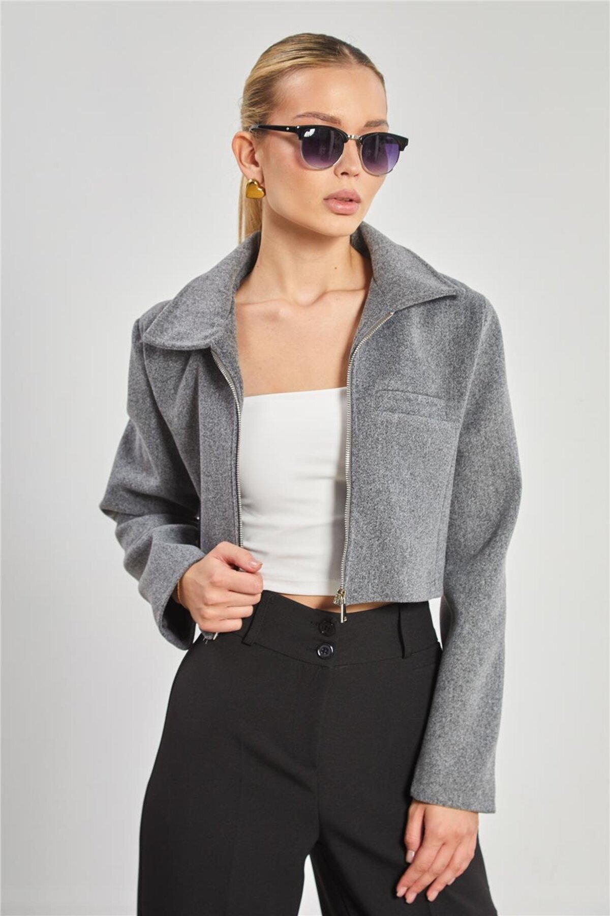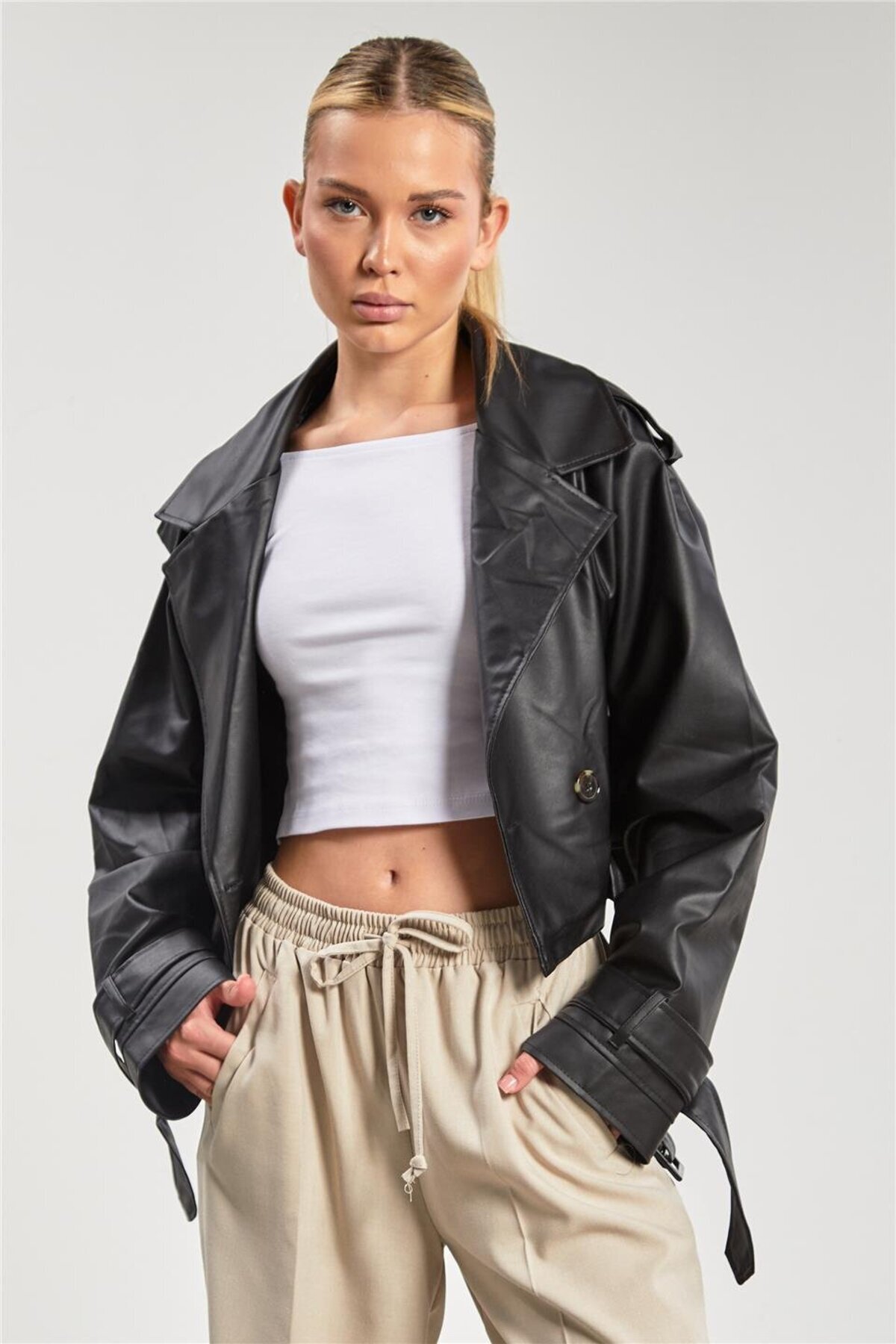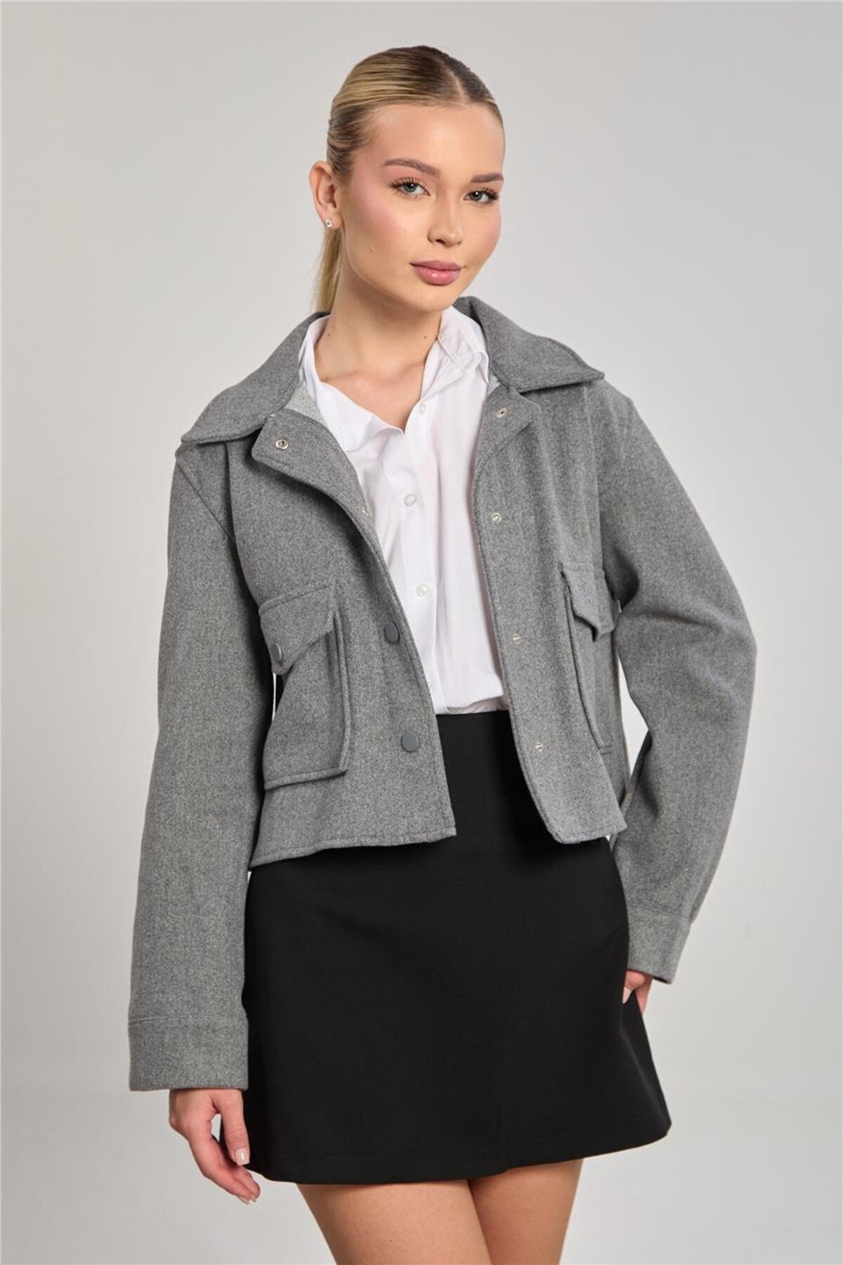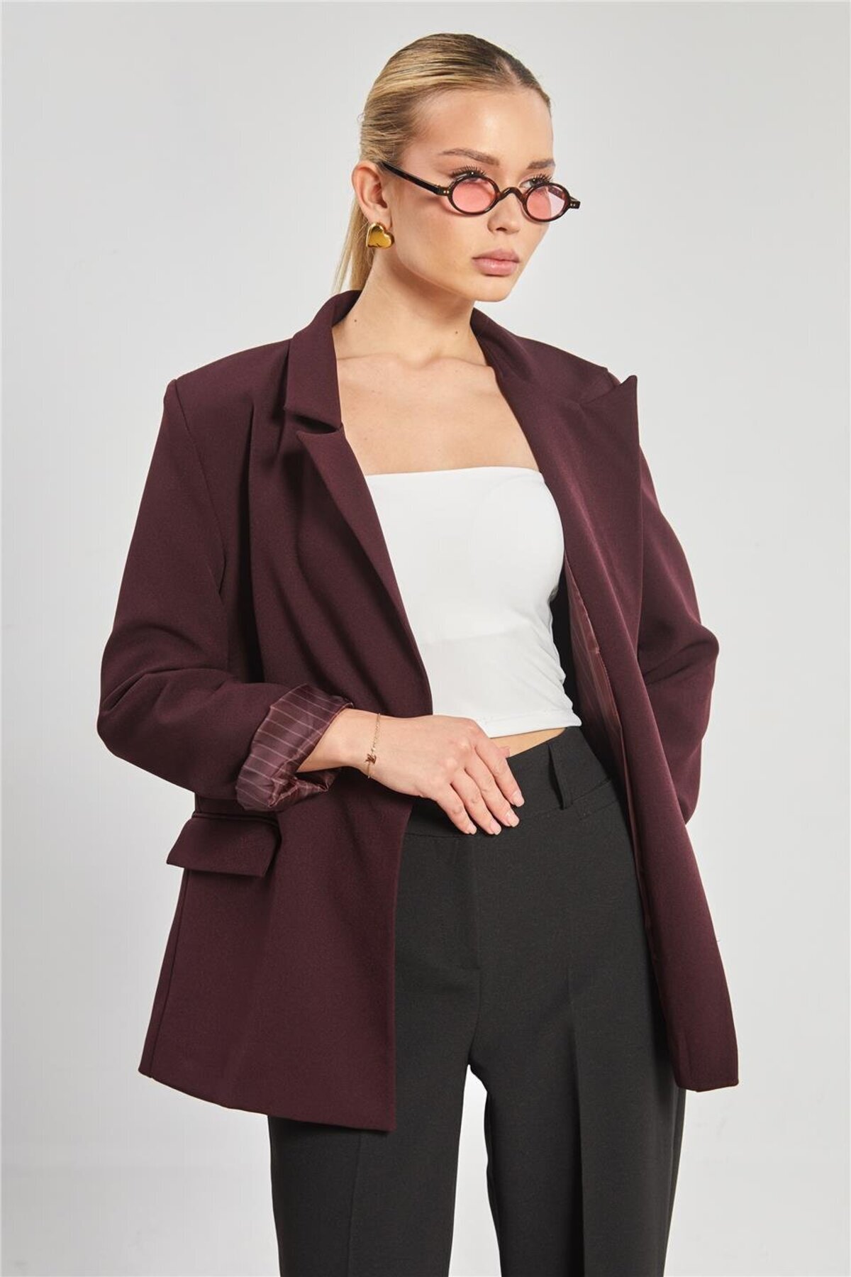 Kadın Kruvaze Yaka Kısa Oversize Ceket - Kahve Kadın Kruvaze Yaka Kısa Oversize Ceket - Kahve 1040-25M50013 Standart