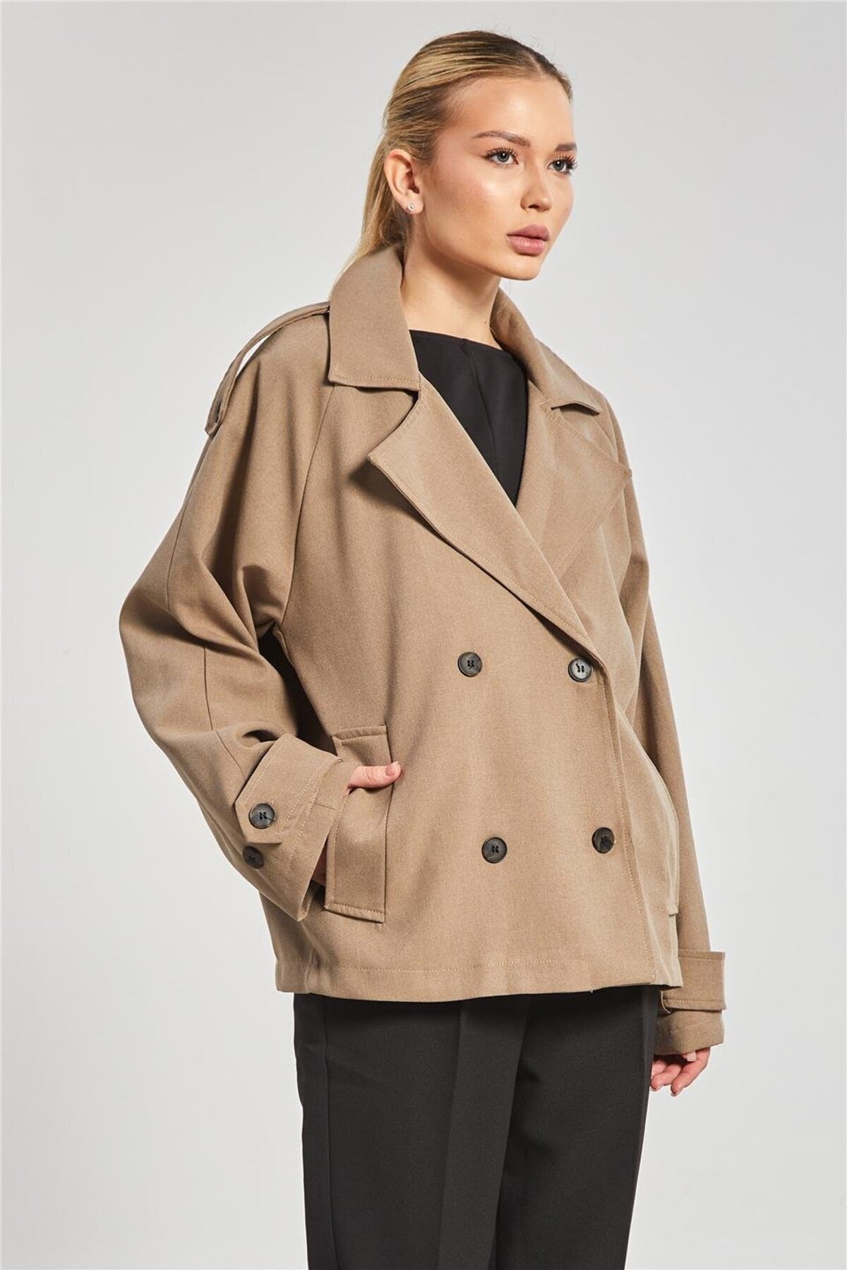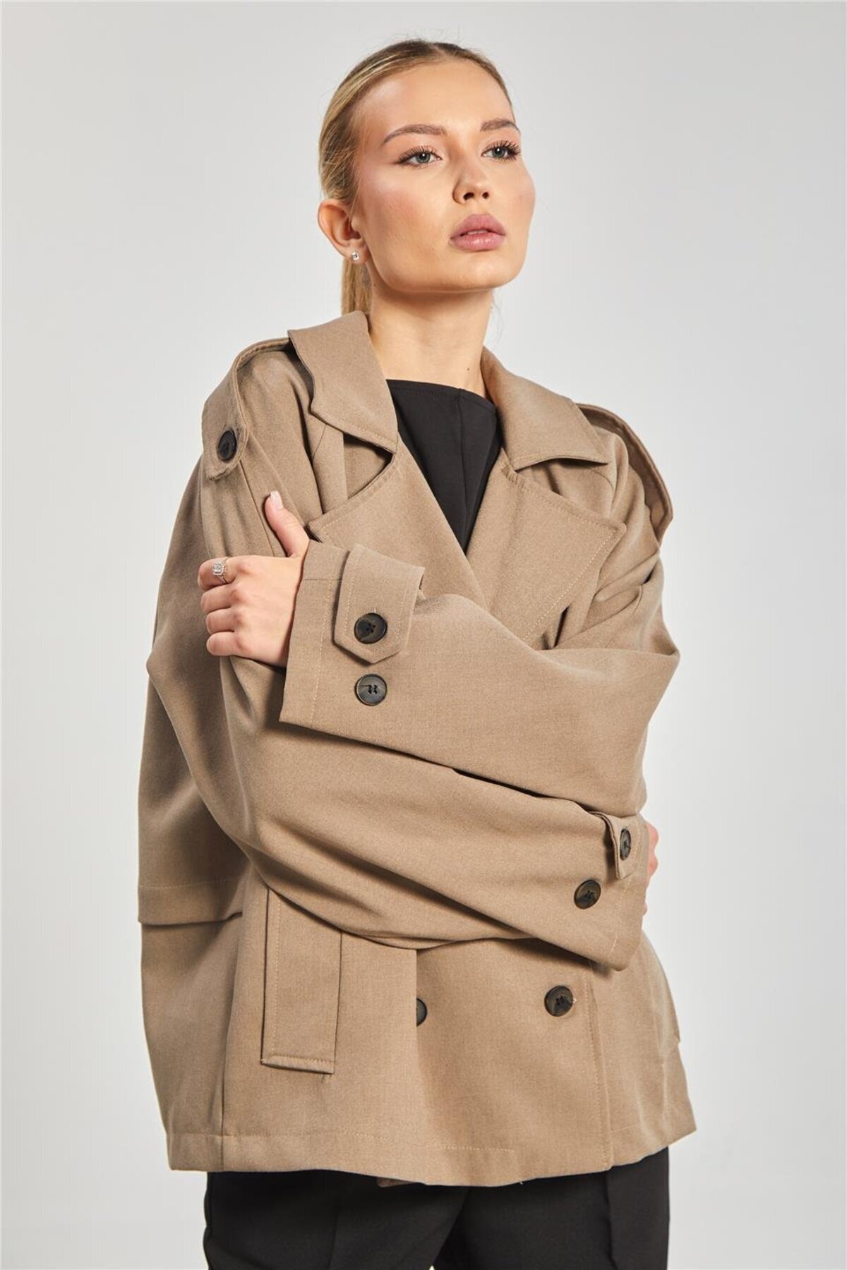 Kadın Kruvaze Yaka Kısa Oversize Ceket - Vizon Kadın Kruvaze Yaka Kısa Oversize Ceket - Vizon 1040-25M50013 Standart
