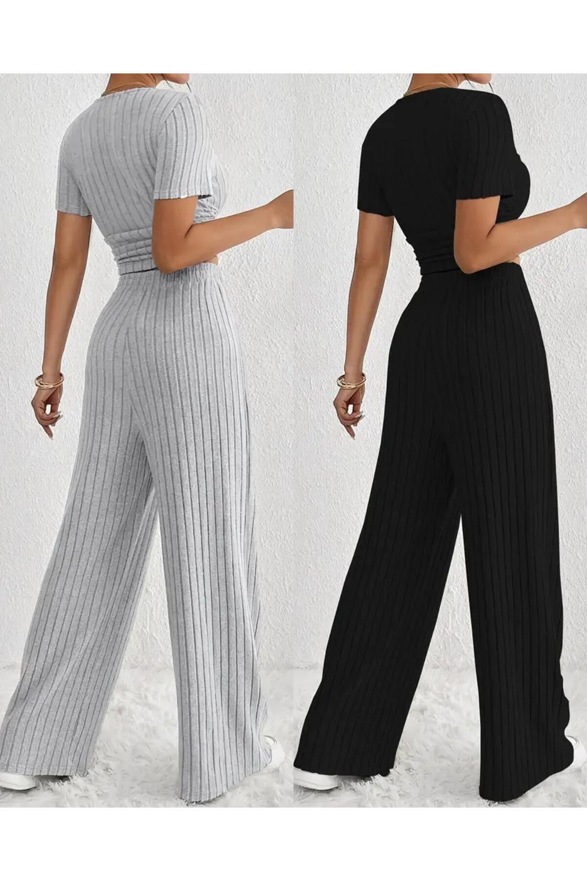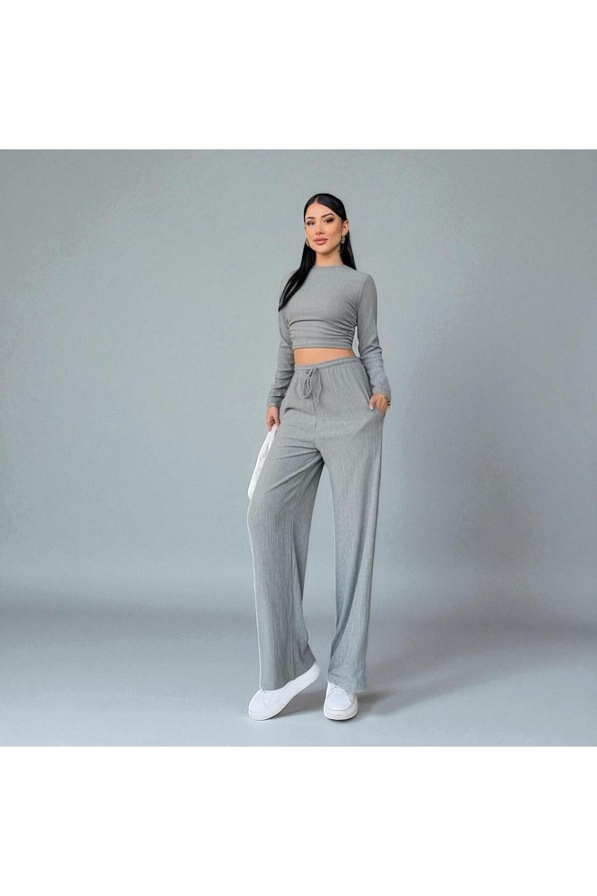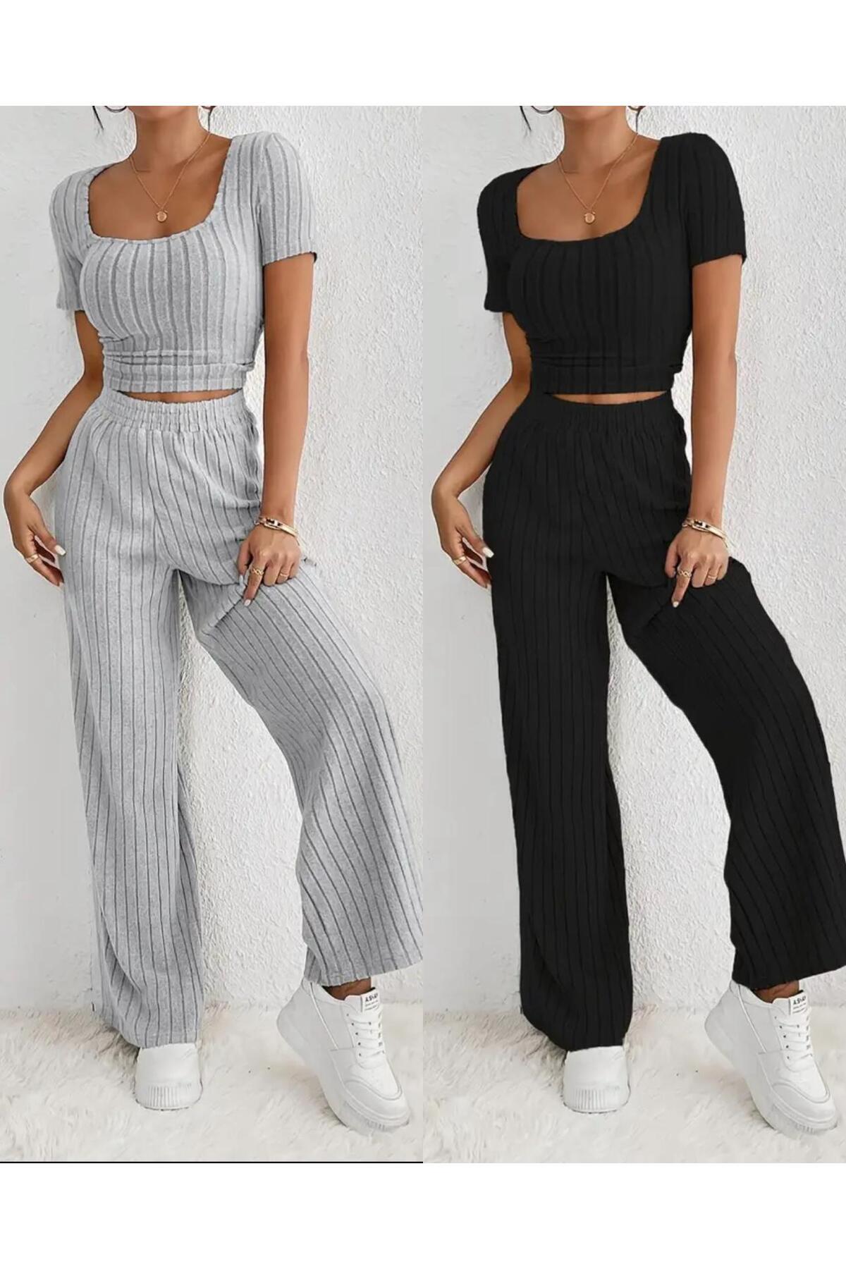 Kadın 2 Renk 2'Li Set Eşofman Takım Crop T-shirt&Pantolon Takım Kadın 2 Renk 2'Li Set Eşofman Takım Crop T-shirt&Pantolon Takım 0011 XL