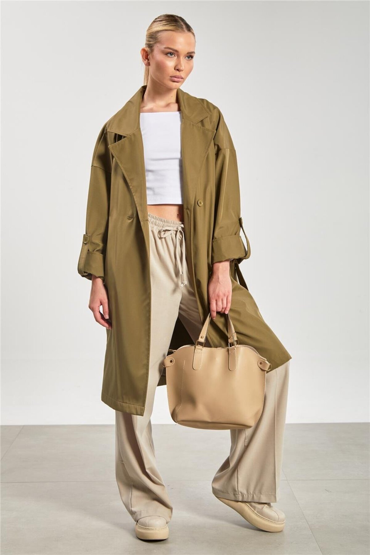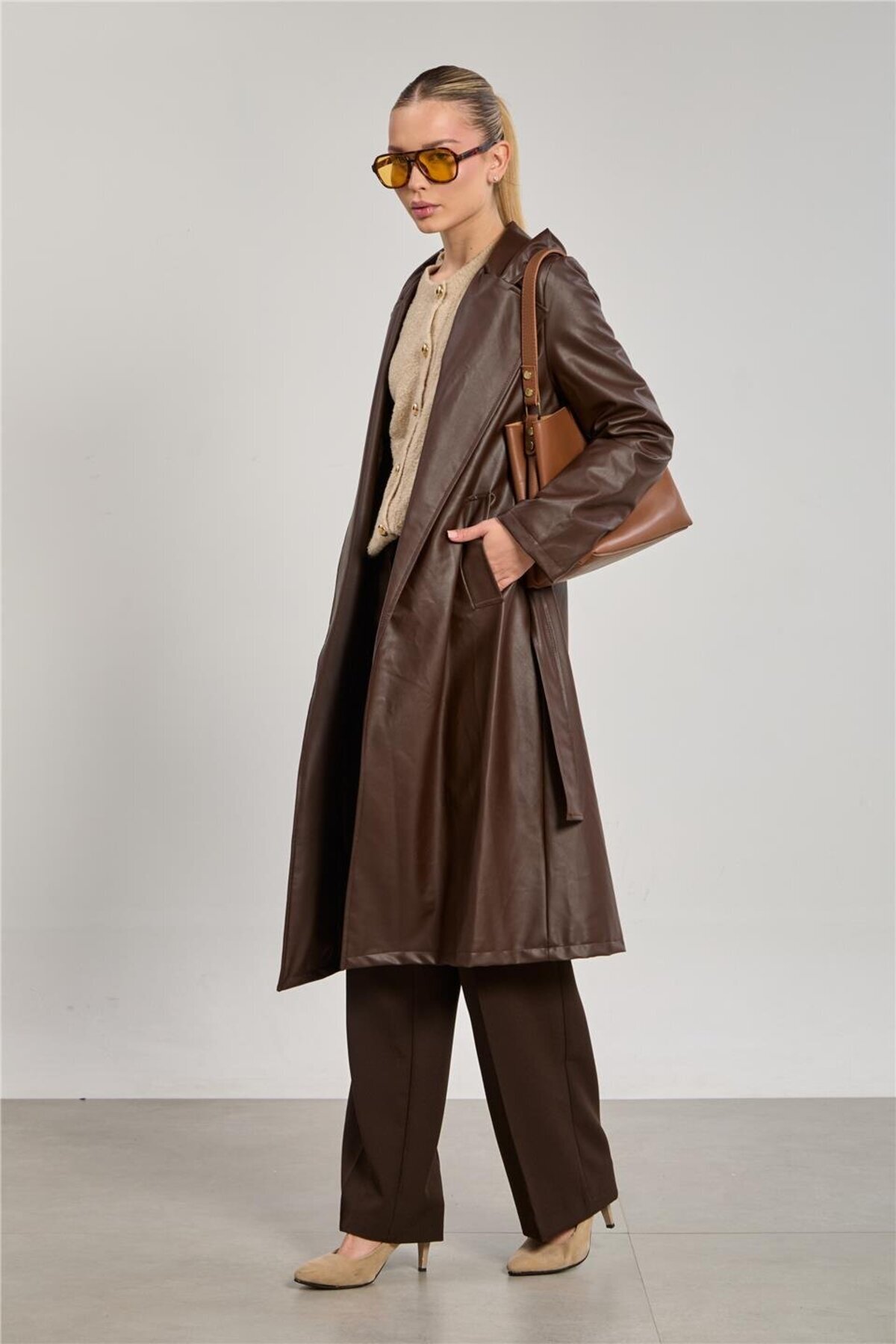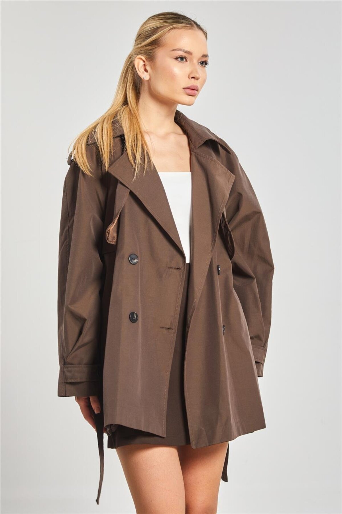 Düğmeli Beli Kuşaklı Kadın Trençkot - Kahve Düğmeli Beli Kuşaklı Kadın Trençkot - Kahve 1040-25M48006 Standart