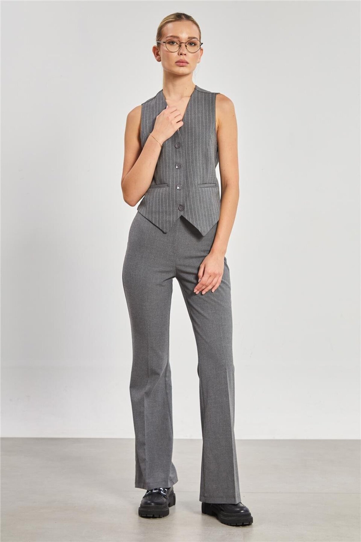 Fleto Cep Çizgili Kadın Yelek - Okul Gri Fleto Cep Çizgili Kadın Yelek - Okul Gri 992-25M11003 XL