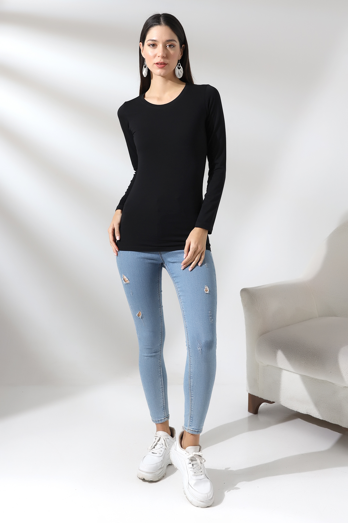 Uzun Kol Bisiklet Yaka Penye Kompakt Body 19646 KAHVE Uzun Kol Bisiklet Yaka Penye Kompakt Body 19646 KAHVE 101BK020001 Standart