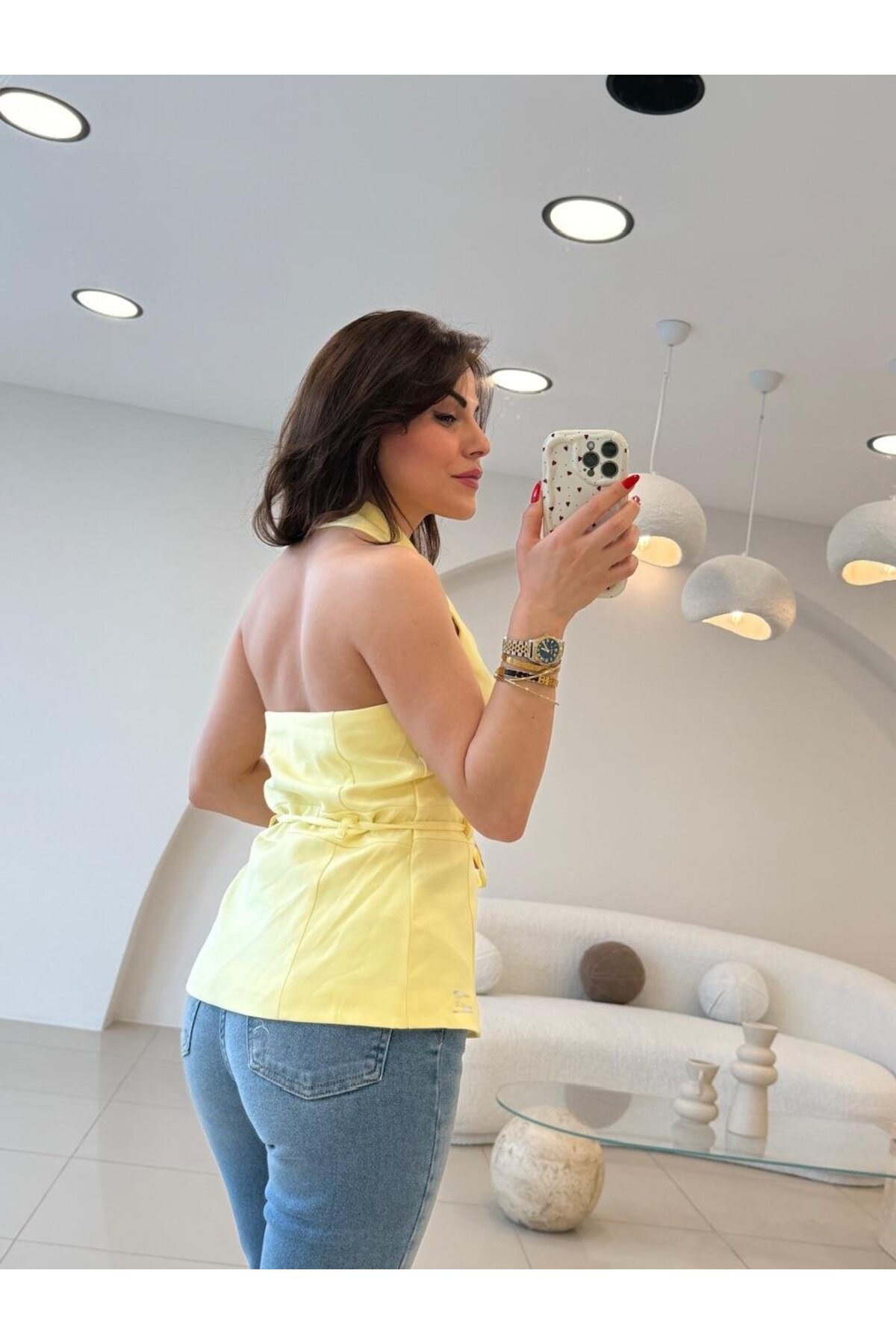 SIRT DEKOLTELİ BAĞLAMALI YELEK SARI SIRT DEKOLTELİ BAĞLAMALI YELEK SARI TXE9AE19352773 L