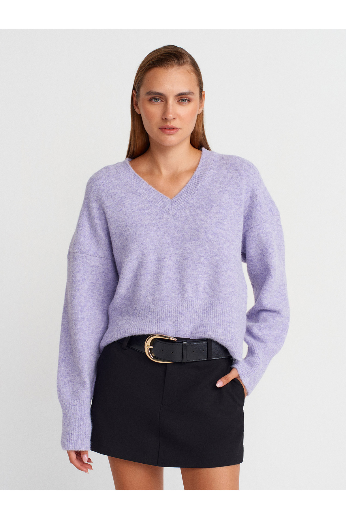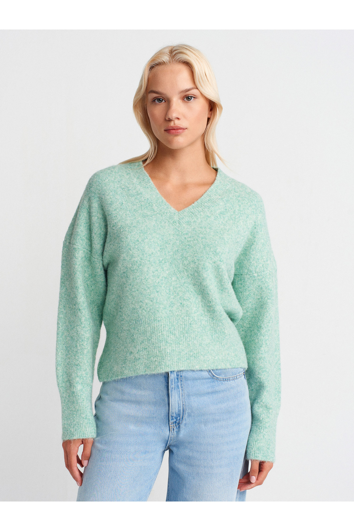 10645 V Yaka Yumuşak Dokulu Triko Kazak-Kahve 10645 V Yaka Yumuşak Dokulu Triko Kazak-Kahve 101A10645 Standart