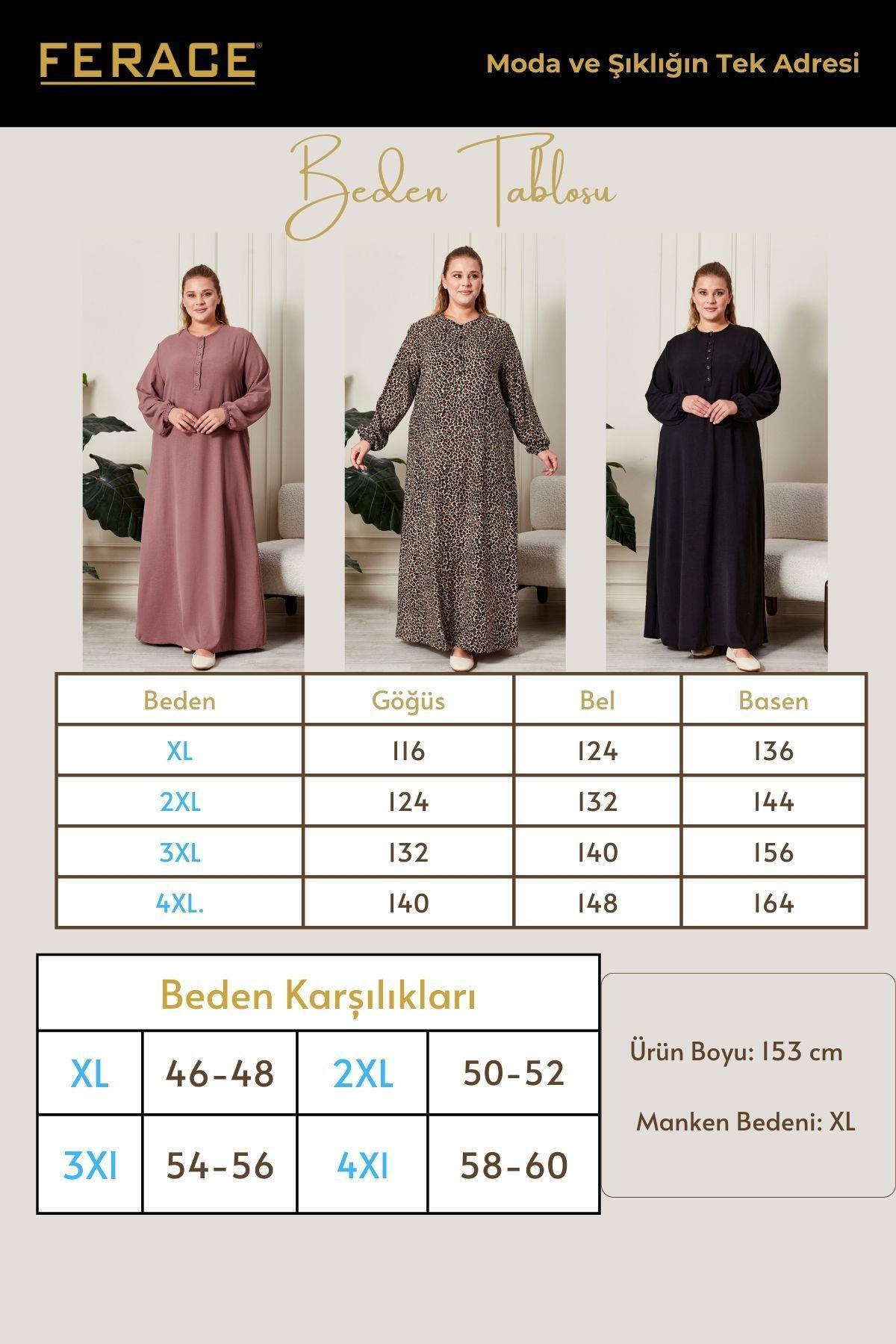 Kadın Büyük Beden Düğmeli Babanne Elbisesi Kadın Büyük Beden Düğmeli Babanne Elbisesi 9429Ferace 2XL