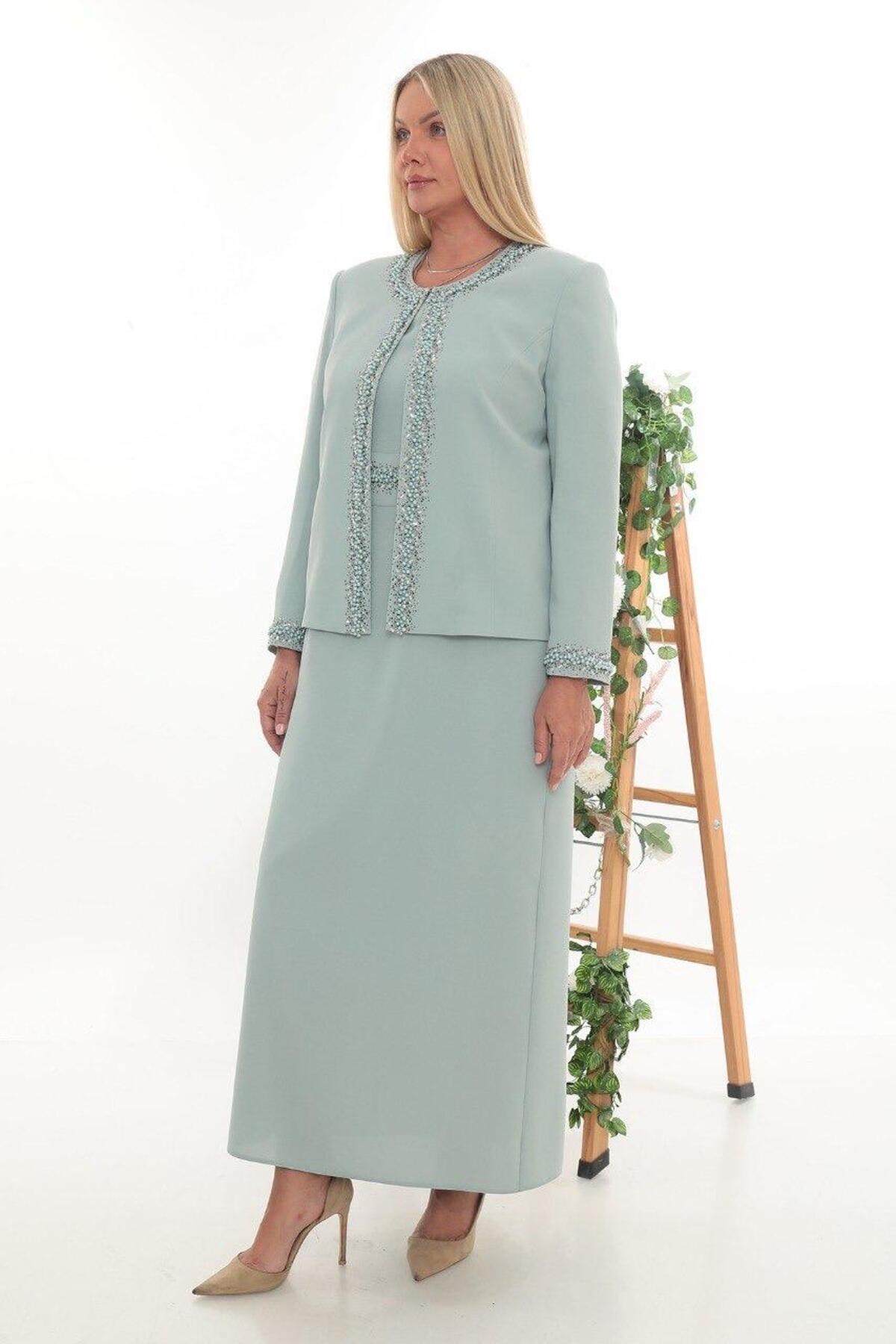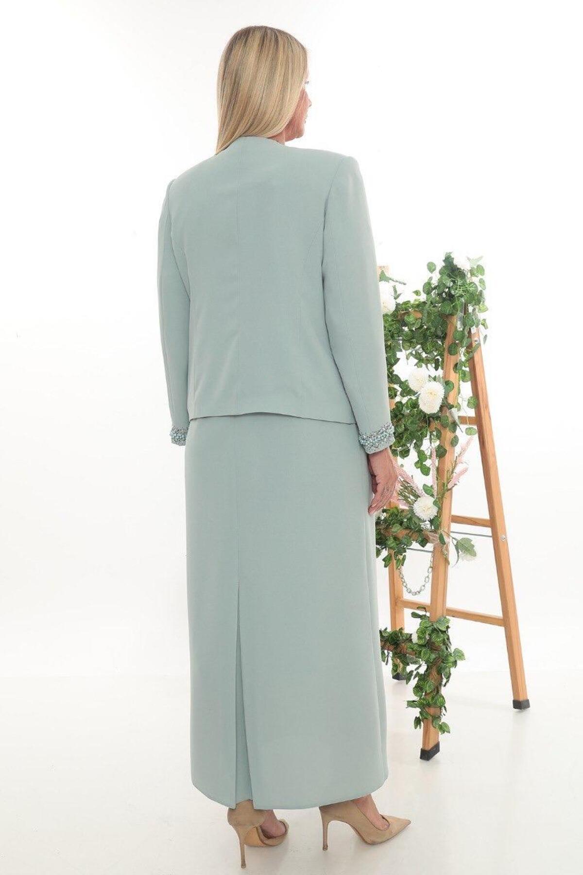 Ceketi Taşlı Kapalı Yırtmaçlı Mint Ceket Elbise Ceketi Taşlı Kapalı Yırtmaçlı Mint Ceket Elbise 9001M 50