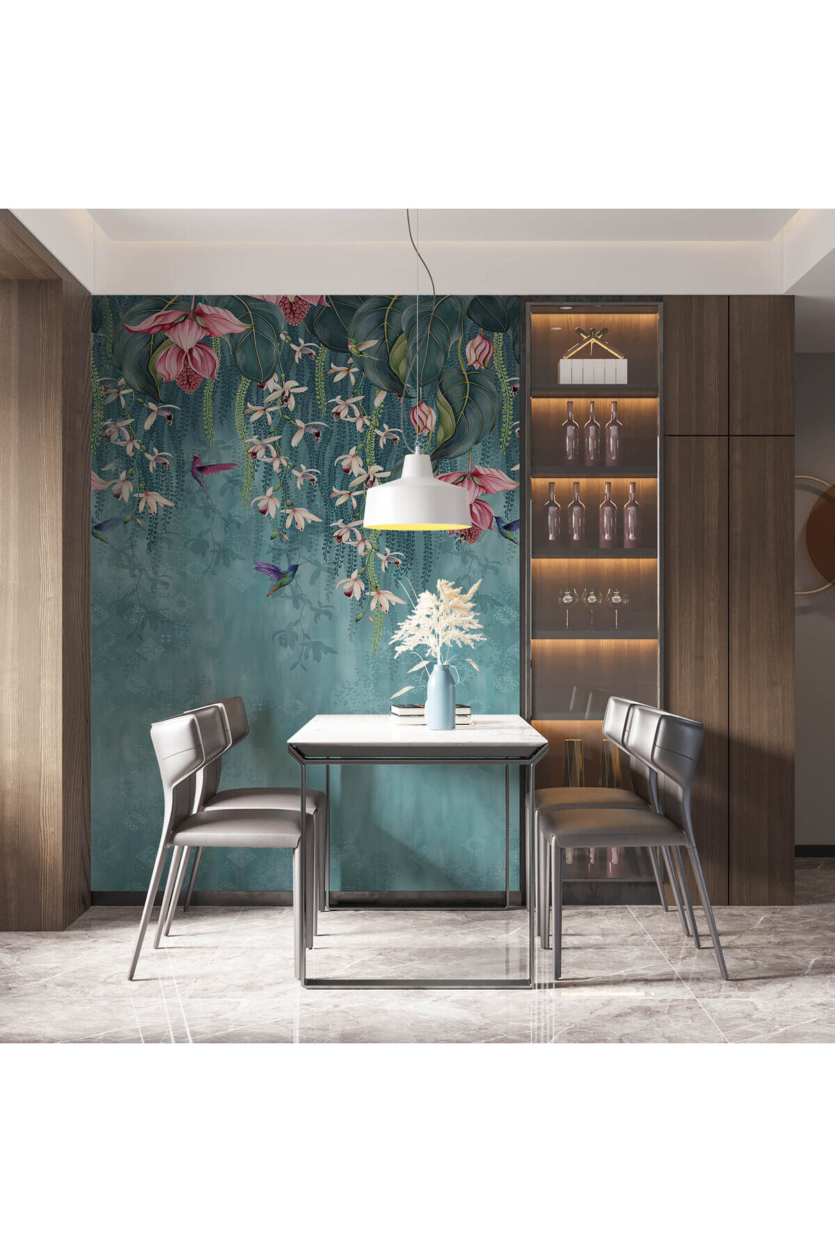Turkuaz Zemin Üzerinde Renkli Çiçekler Duvar Kağıdı Turkuaz Zemin Üzerinde Renkli Çiçekler Duvar Kağıdı NEW-vintage-32 250 x 170