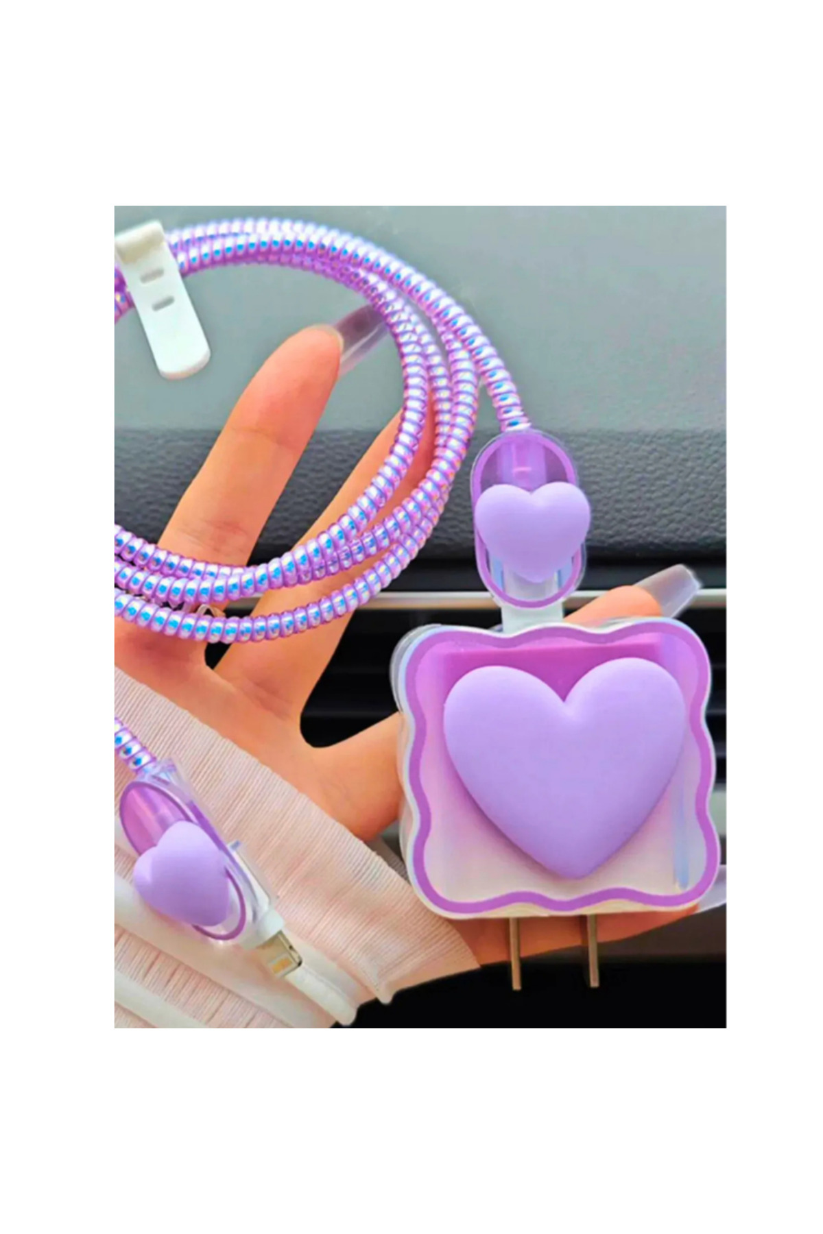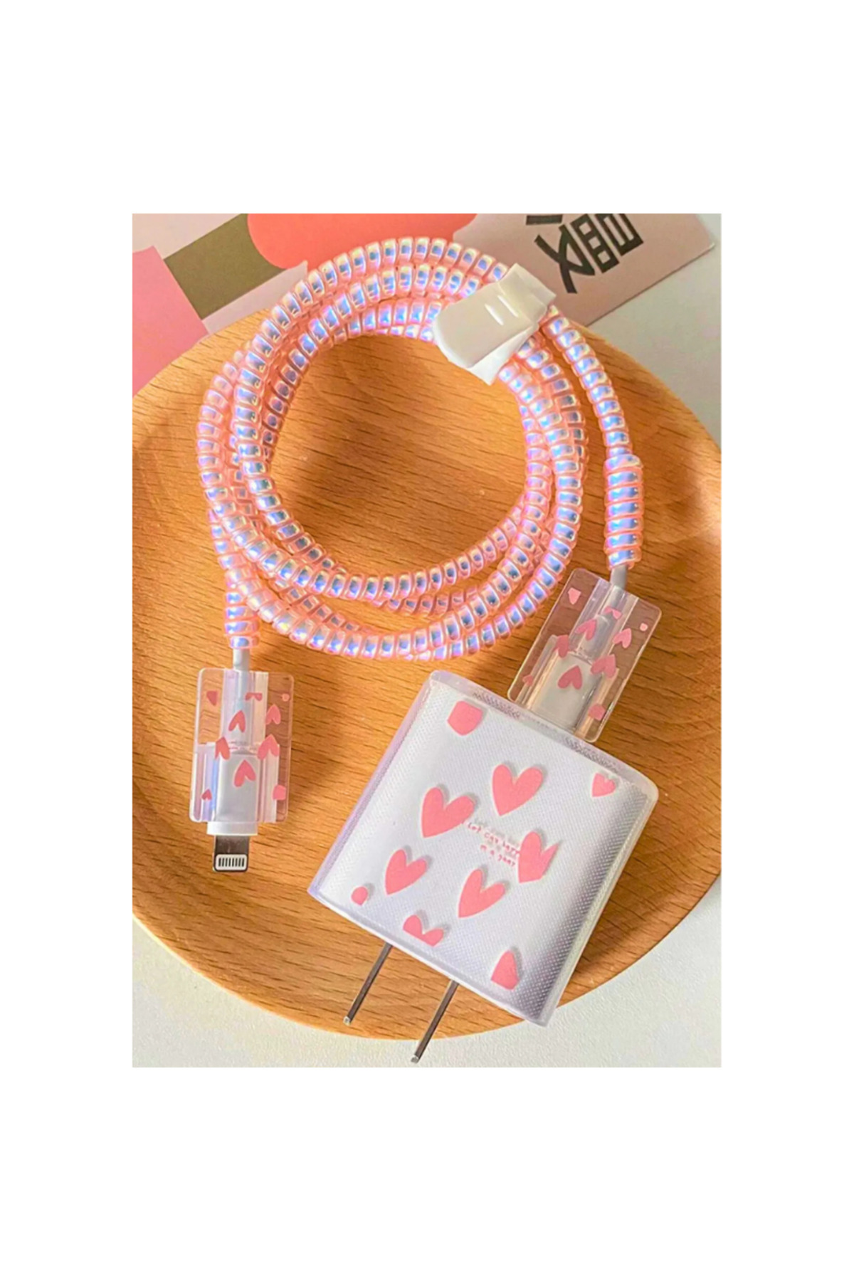 18W/20W Uyumlu Şarj Aleti Kılıfı, Adaptör Ve Kablo Koruyucu Rengarenk Sevimli Figürler 18W/20W Uyumlu Şarj Aleti Kılıfı, Adaptör Ve Kablo Koruyucu Rengarenk Sevimli Figürler Şarj Aleti Kılıfı Pembe Kalp تک سایز
