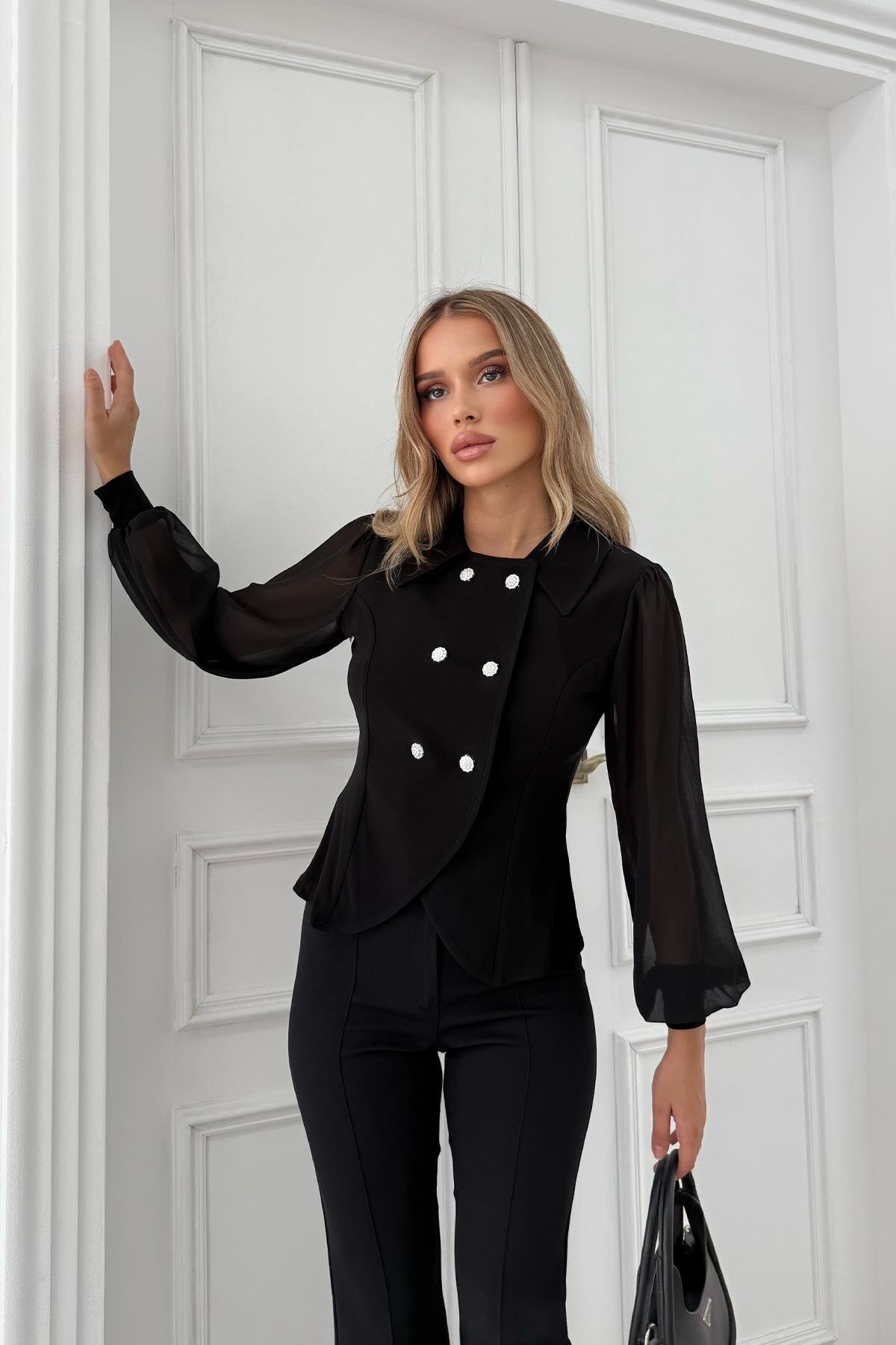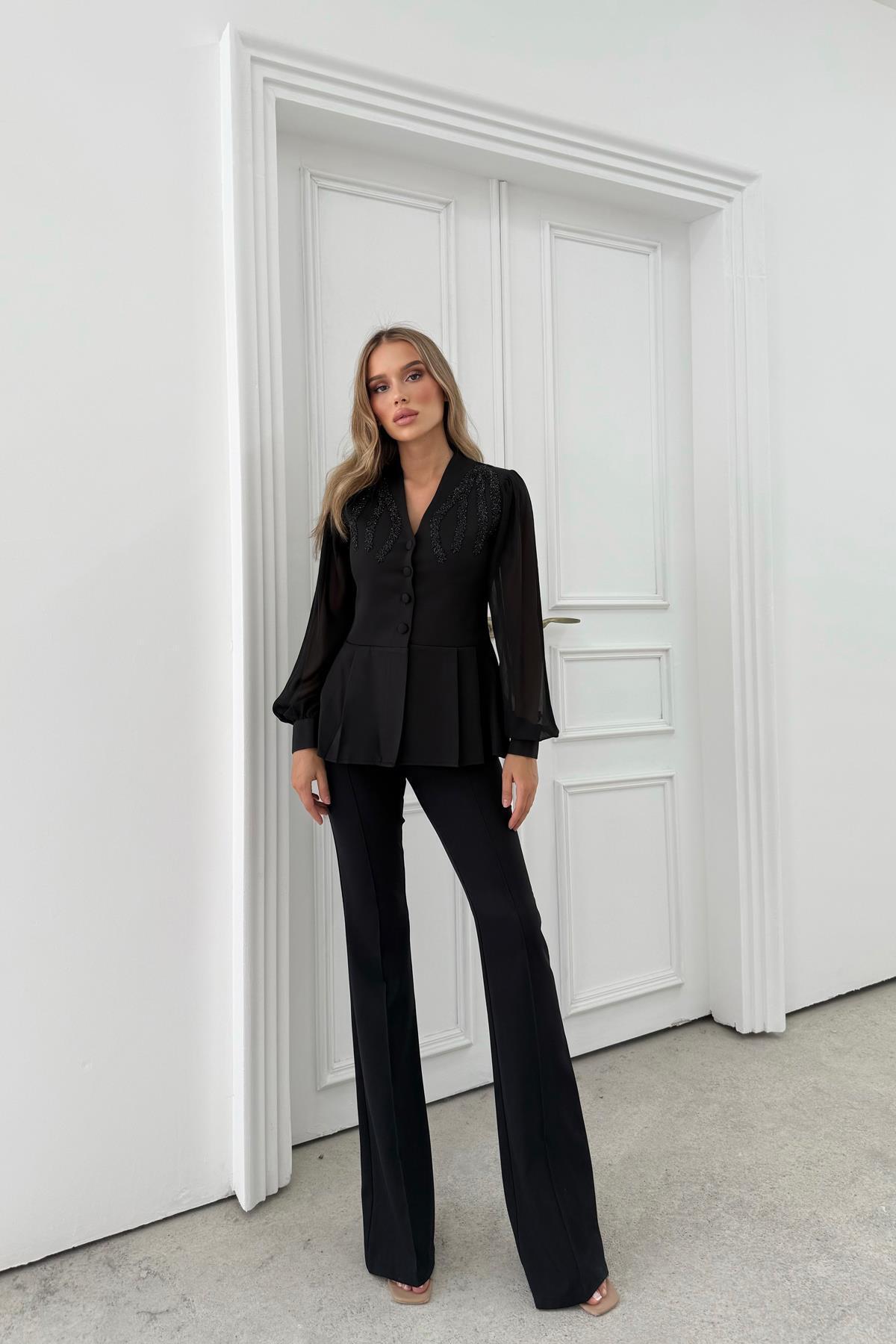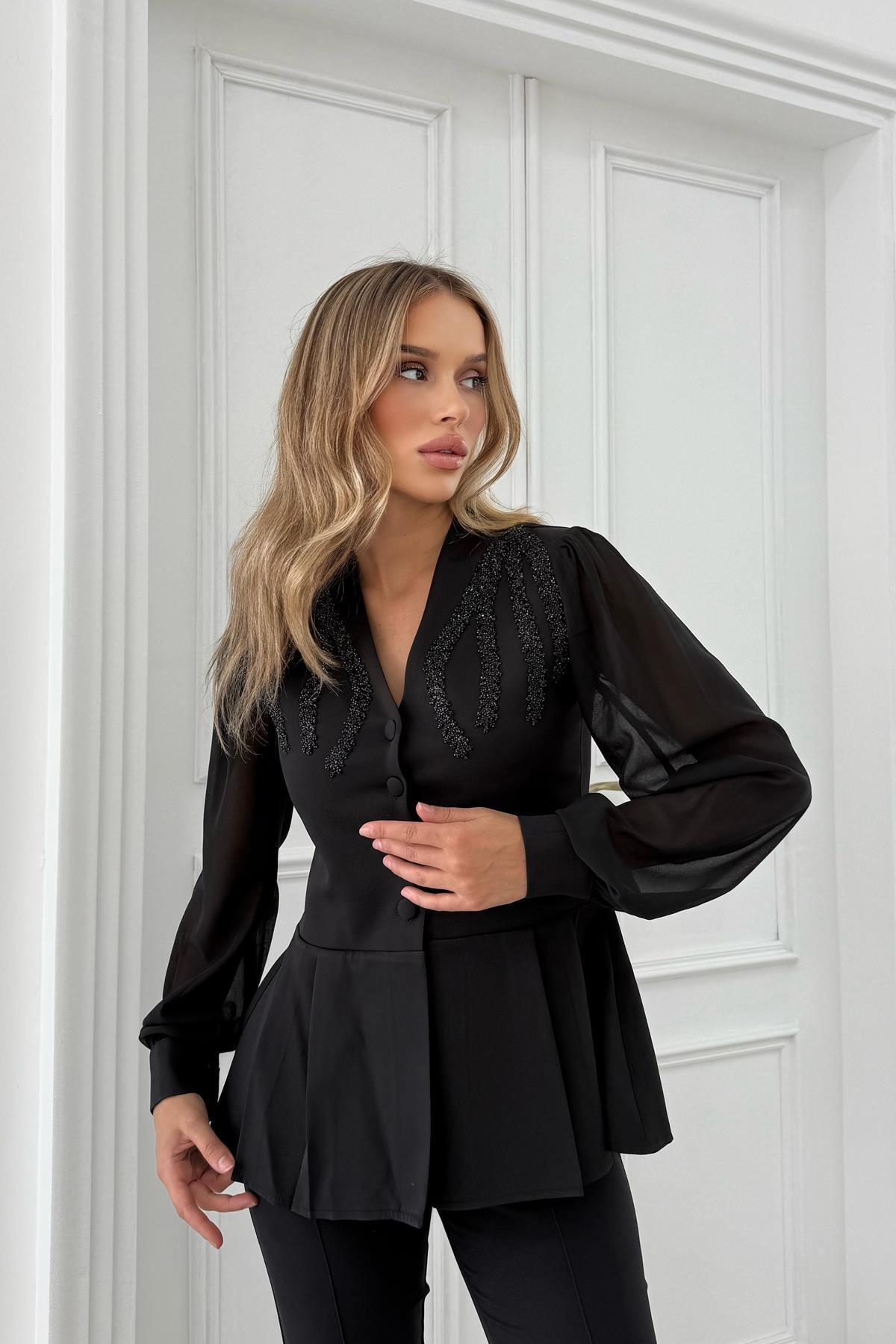 Kadın Omzu Taş İşleme Detaylı Kolları Şifon Bluz Siyah Kadın Omzu Taş İşleme Detaylı Kolları Şifon Bluz Siyah RB2891 XL