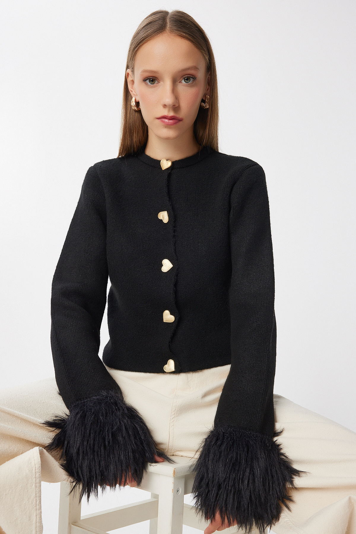 Şık Düğmeli Püsküllü Triko Hırka LMT0028 SİYAH Şık Düğmeli Püsküllü Triko Hırka LMT0028 SİYAH S/M