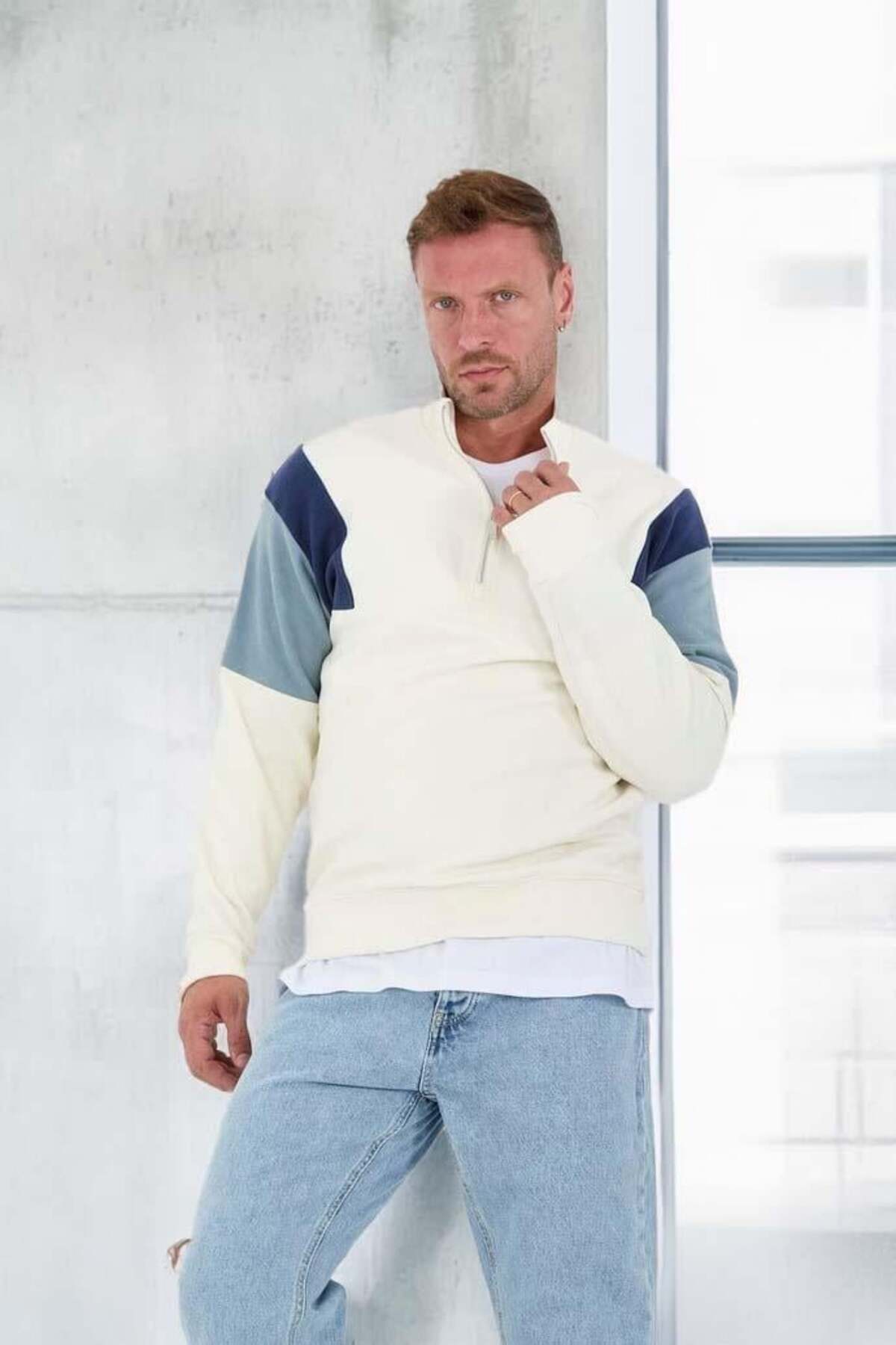 Crowe Çizgi Şeritli Oversize Yarım Fermuar Polar Erkek Sweatshirt - Lacivert Crowe Çizgi Şeritli Oversize Yarım Fermuar Polar Erkek Sweatshirt - Lacivert SS10036 XL