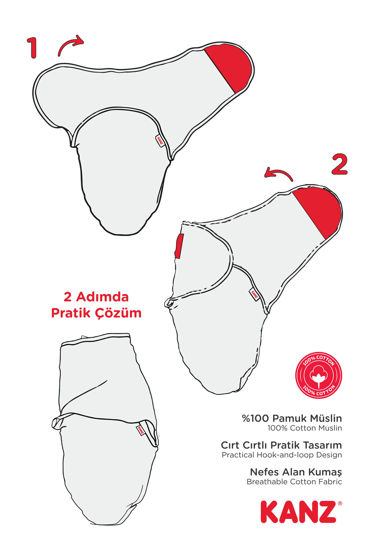 Yenidoğan %100 Pamuk Müslin Hazır Kundak Cırtlı - Little Hearts Yenidoğan %100 Pamuk Müslin Hazır Kundak Cırtlı - Little Hearts 8683582016755 تک سایز