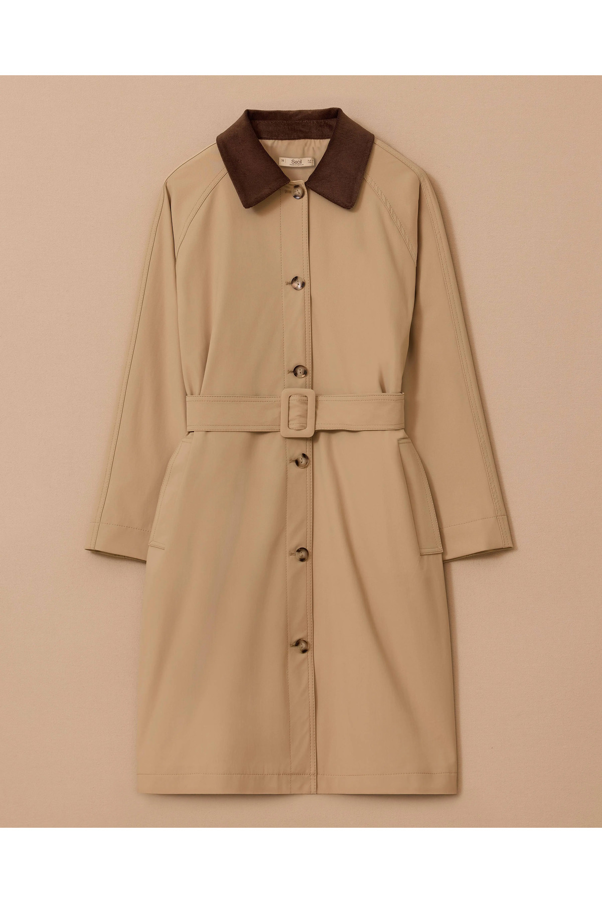 Kadife Yaka Kemerli Trençkot Kadife Yaka Kemerli Trençkot 10002522110005 44