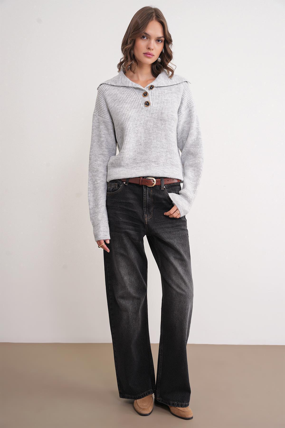 6900 Kadın Düğmeli Devrik Yaka Triko Kazak Gri 6900 Kadın Düğmeli Devrik Yaka Triko Kazak Gri K24KZK6900 Standart
