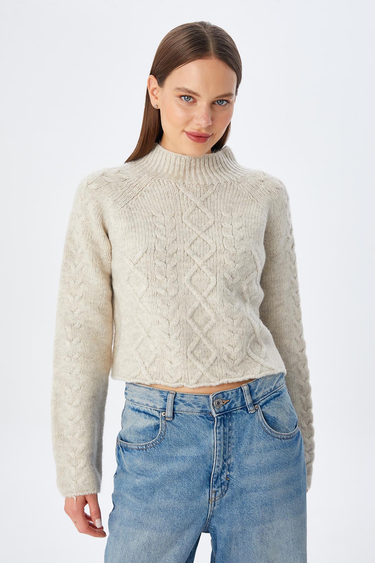 6854 Kadın Dik Yaka Bütün Crop Triko Kazak Mint 6854 Kadın Dik Yaka Bütün Crop Triko Kazak Mint K24KZK6854 Standart