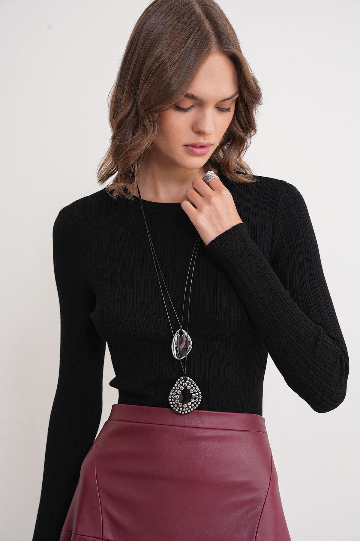 6938 Kadın Bisiklet Yaka Fitilli Triko Body Siyah 6938 Kadın Bisiklet Yaka Fitilli Triko Body Siyah Y25KZK6938 L