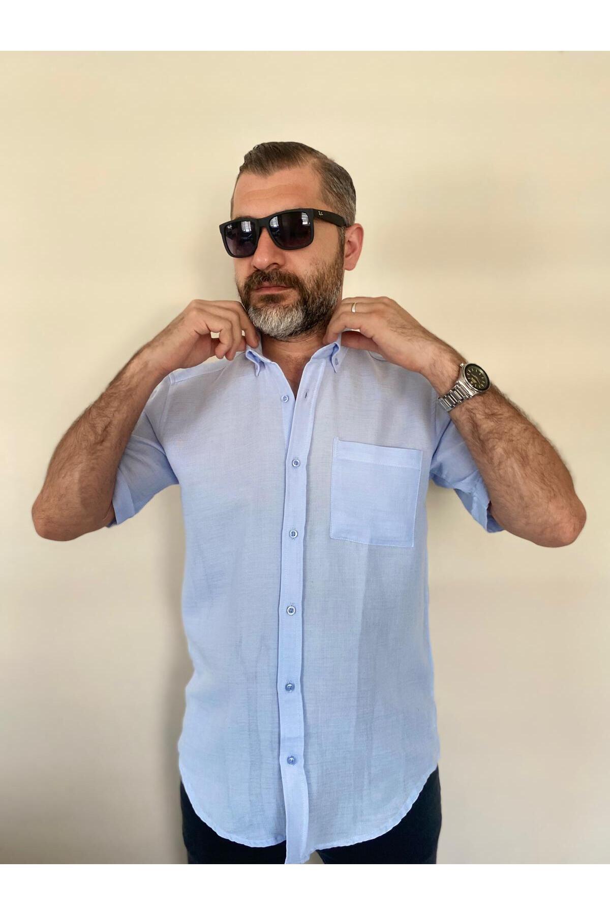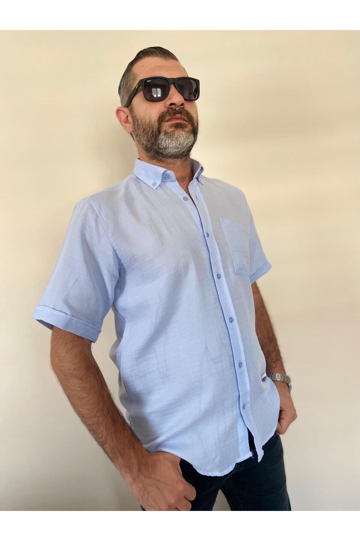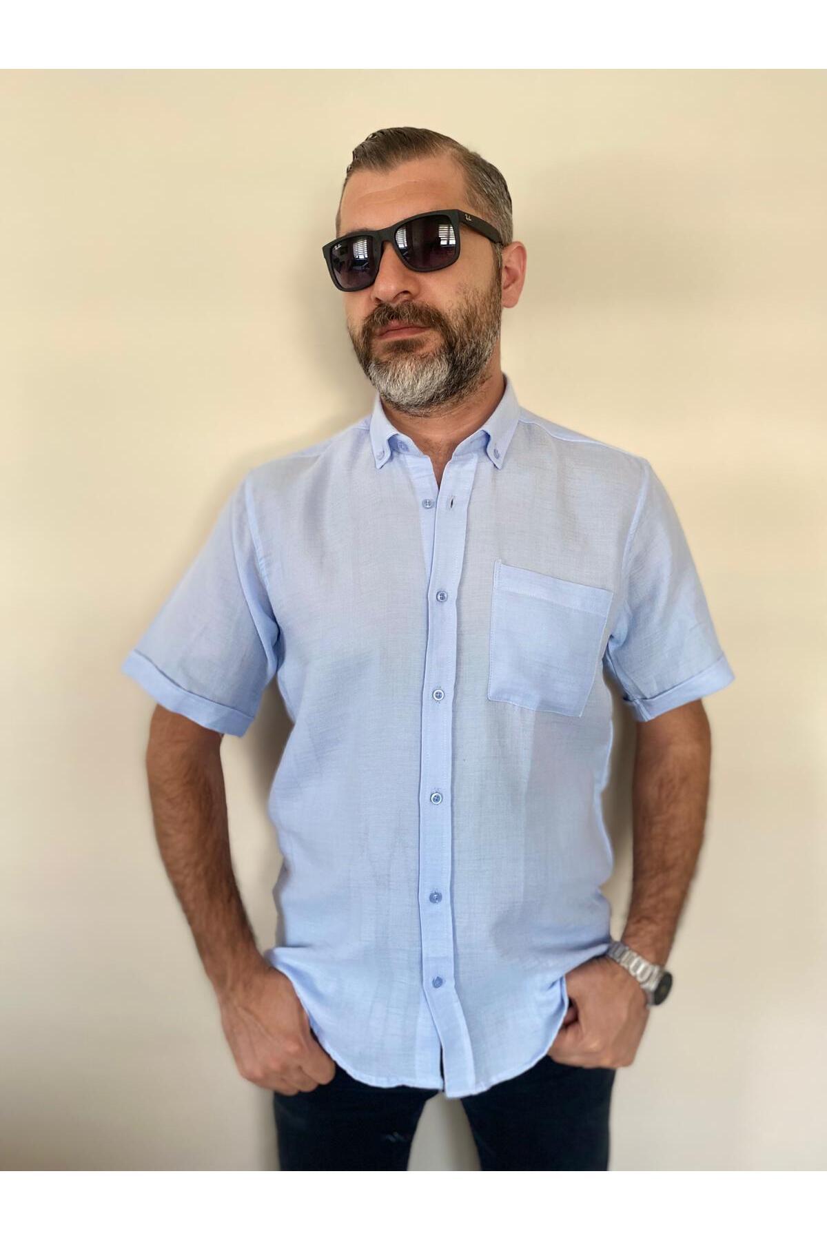 Müslin Keten cepli klasik kısa kollu rahat kalıp gömlek Müslin Keten cepli klasik kısa kollu rahat kalıp gömlek BNS0000153 4XL