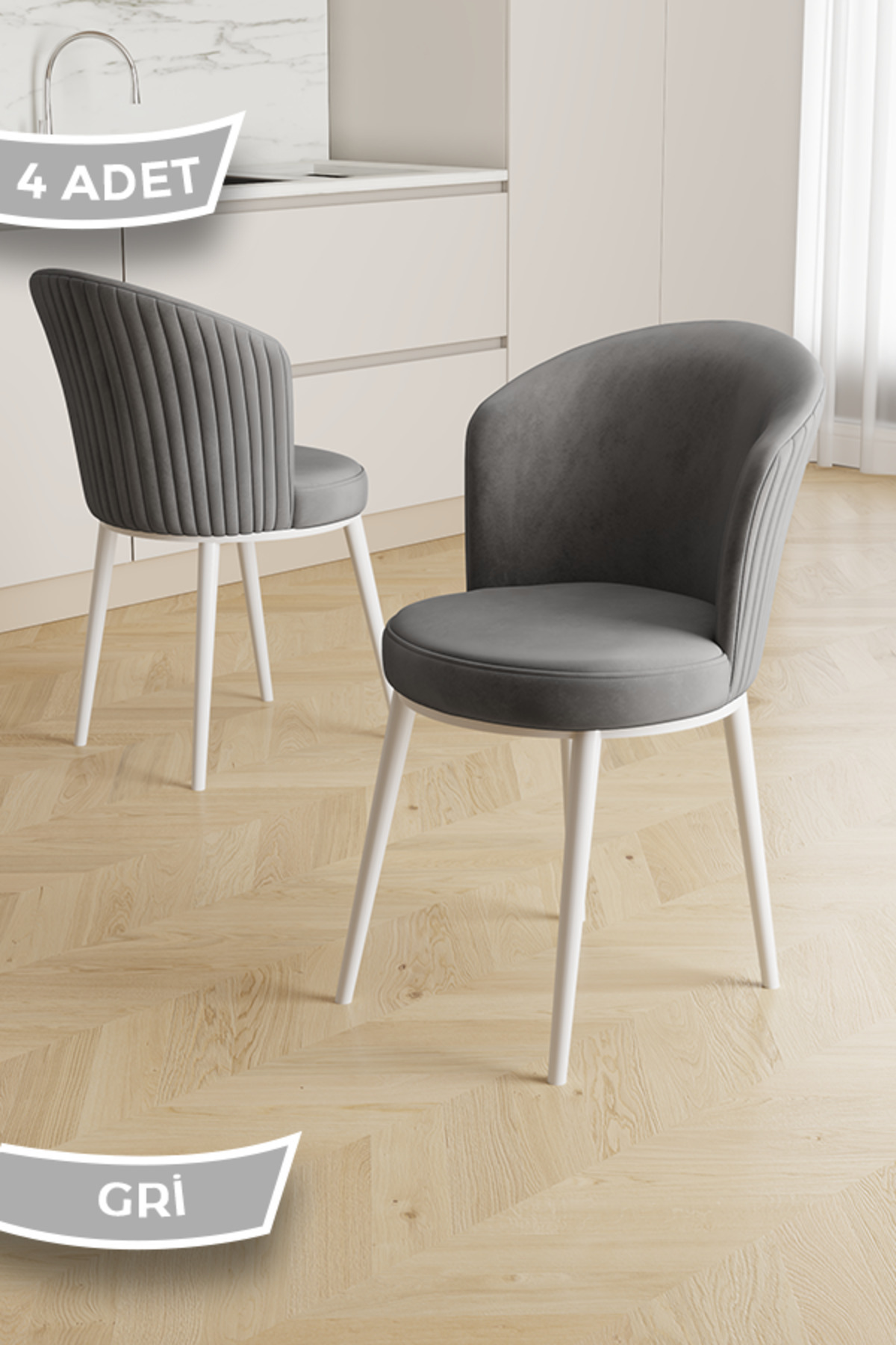 Risa Serisi 4 Adet Antrasit Mutfak Sandalyesi Beyaz Metal Ayak 1.Sınıf Babyface Kumaş Risa Serisi 4 Adet Antrasit Mutfak Sandalyesi Beyaz Metal Ayak 1.Sınıf Babyface Kumaş RİSA04BYZ تک سایز