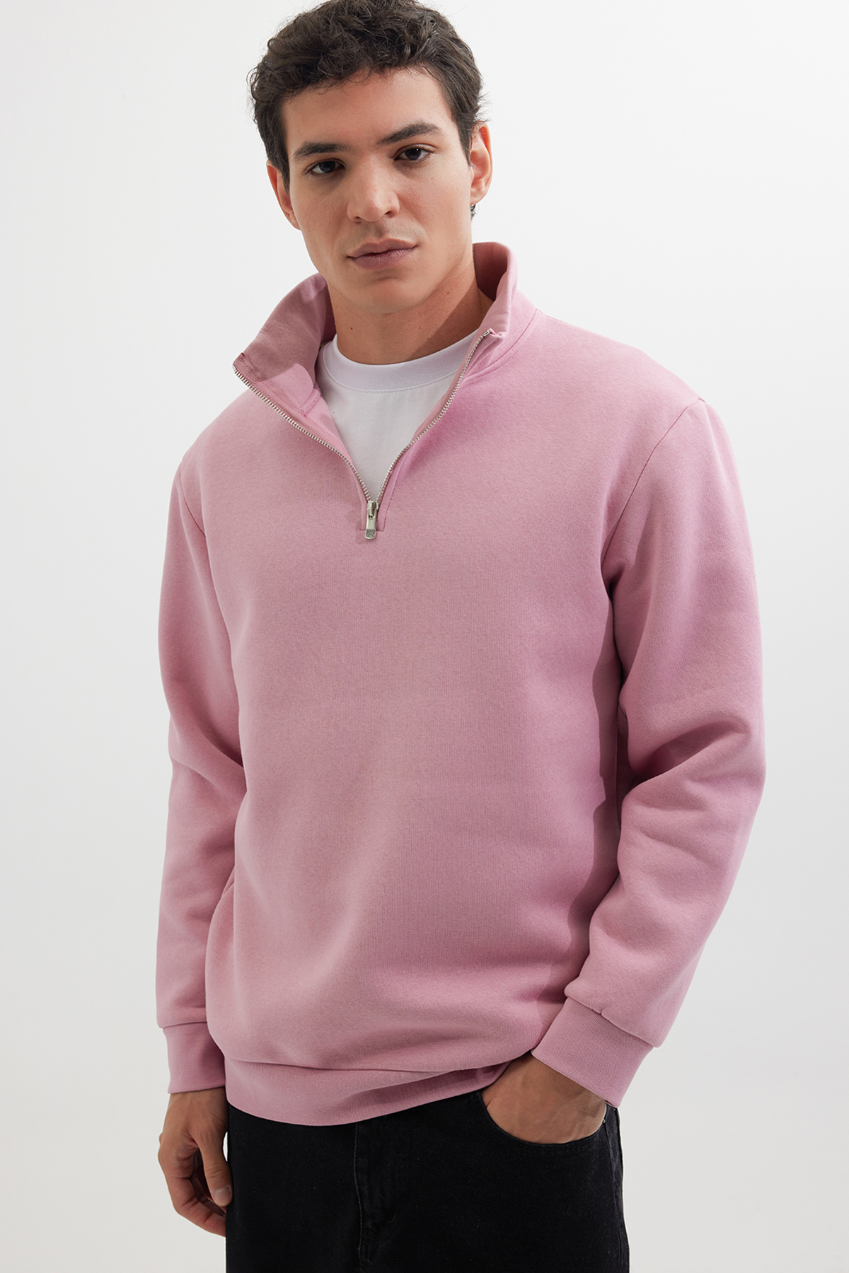 Unisex Relax Fit Rahat Kesim Pamuklu İçi Polarlı Yarım Fermuarlı Pembe Dik Yaka Sweatshirt Unisex Relax Fit Rahat Kesim Pamuklu İçi Polarlı Yarım Fermuarlı Pembe Dik Yaka Sweatshirt SW240002 3XL