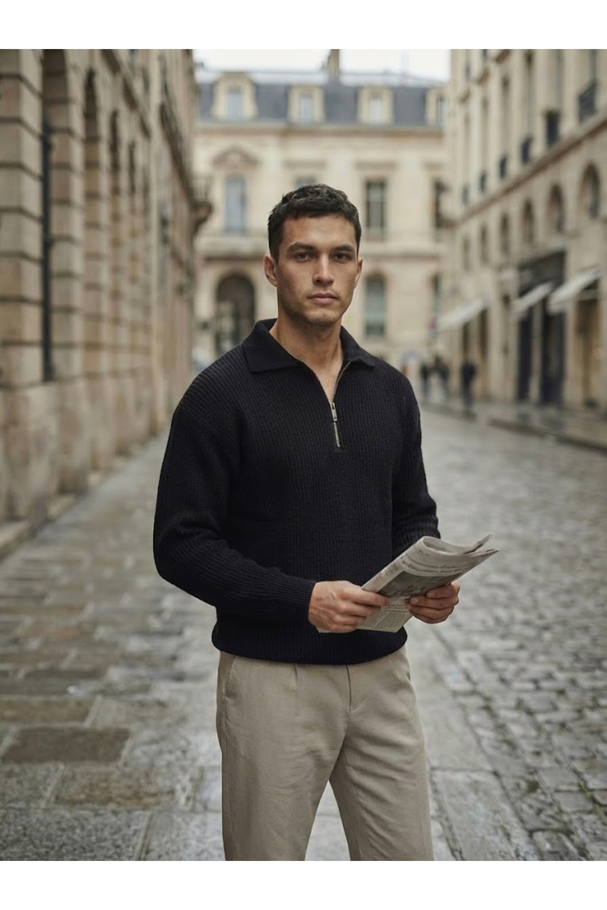 Gibson Oversize Yarım Fermuar Gömlek Polo Yaka Selanik Örme Erkek Triko Kazak - Siyah Gibson Oversize Yarım Fermuar Gömlek Polo Yaka Selanik Örme Erkek Triko Kazak - Siyah BK10028 XL