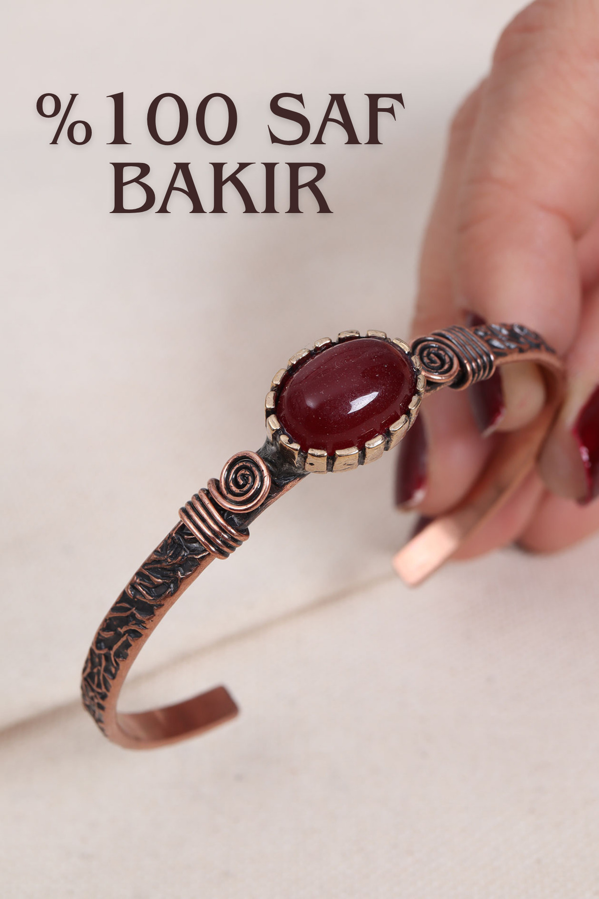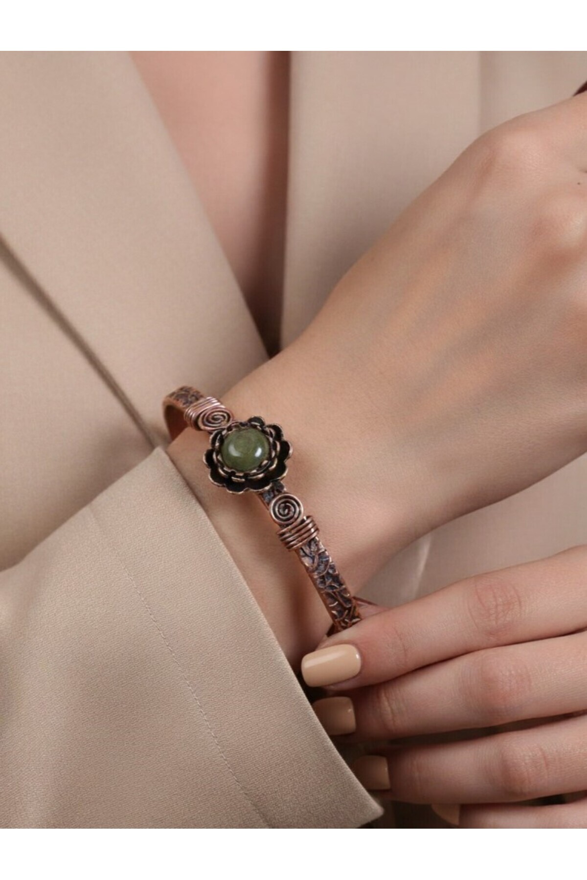 Ukanit Taşlı Saf Bakır Otantik Çiçek Figür Bilezik Ukanit Taşlı Saf Bakır Otantik Çiçek Figür Bilezik MRT2509B006 تک سایز