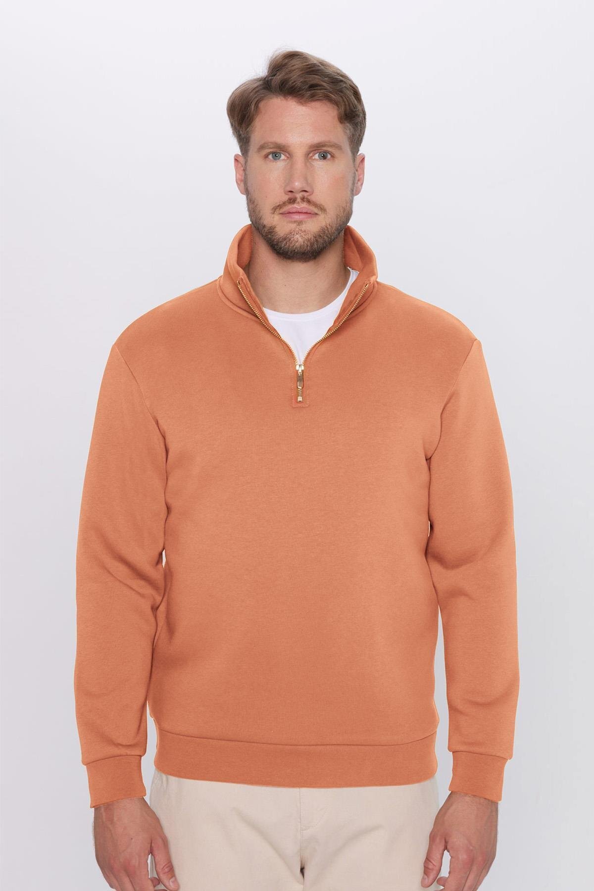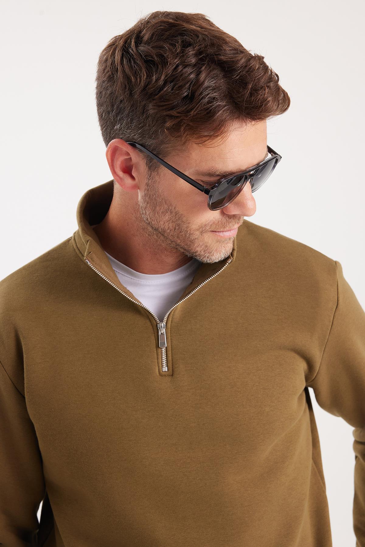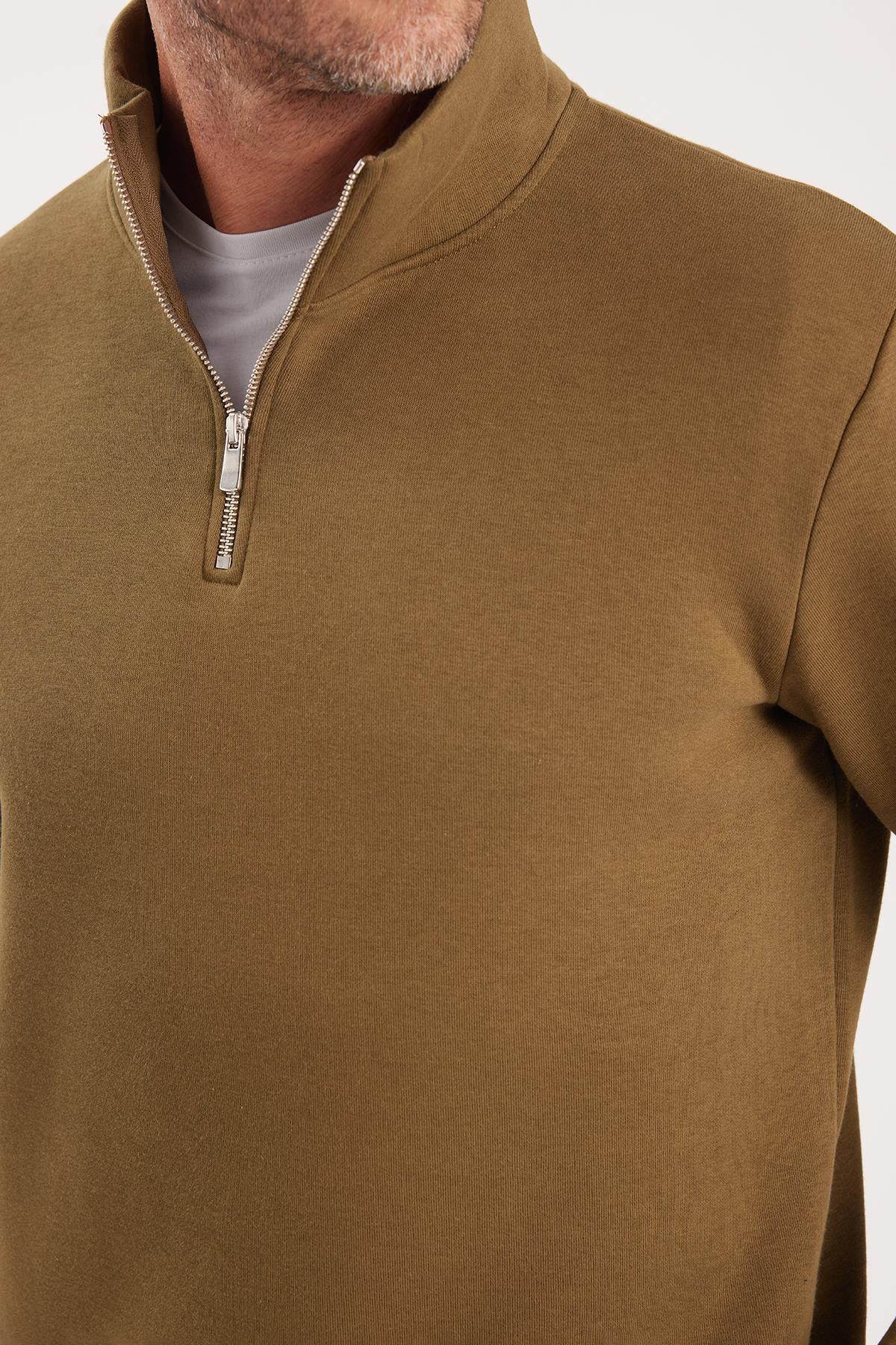 Unisex Relax Fit Rahat Kesim Pamuklu İçi Polarlı Yarım Fermuarlı Yeşil Dik Yaka Sweatshirt Unisex Relax Fit Rahat Kesim Pamuklu İçi Polarlı Yarım Fermuarlı Yeşil Dik Yaka Sweatshirt SW240002 3XL