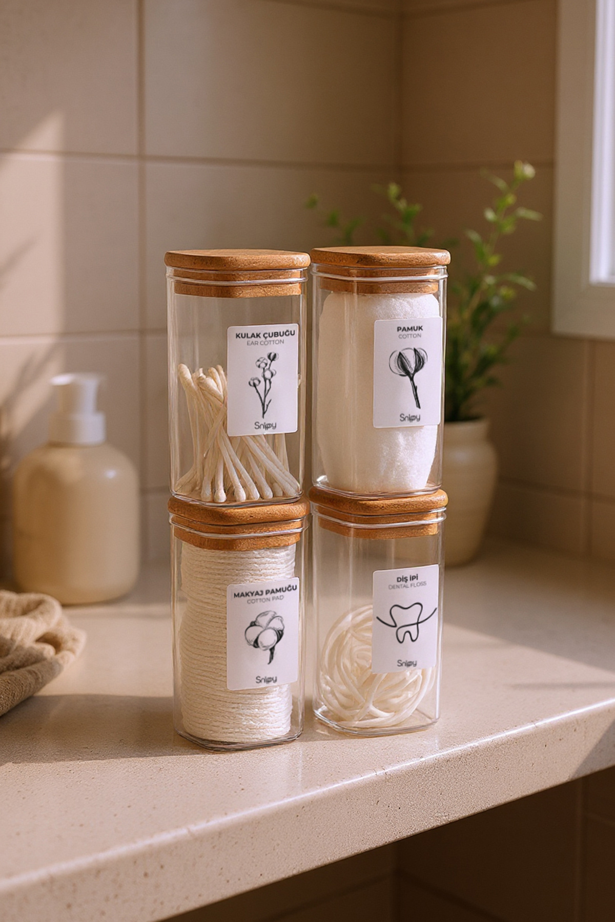 Luvo Beyaz - 3'lü Kare Ahşap Vakum Kapaklı Banyo Düzenleyici Plastik Banyo Seti Etiketli Organizer SNPLUVO3