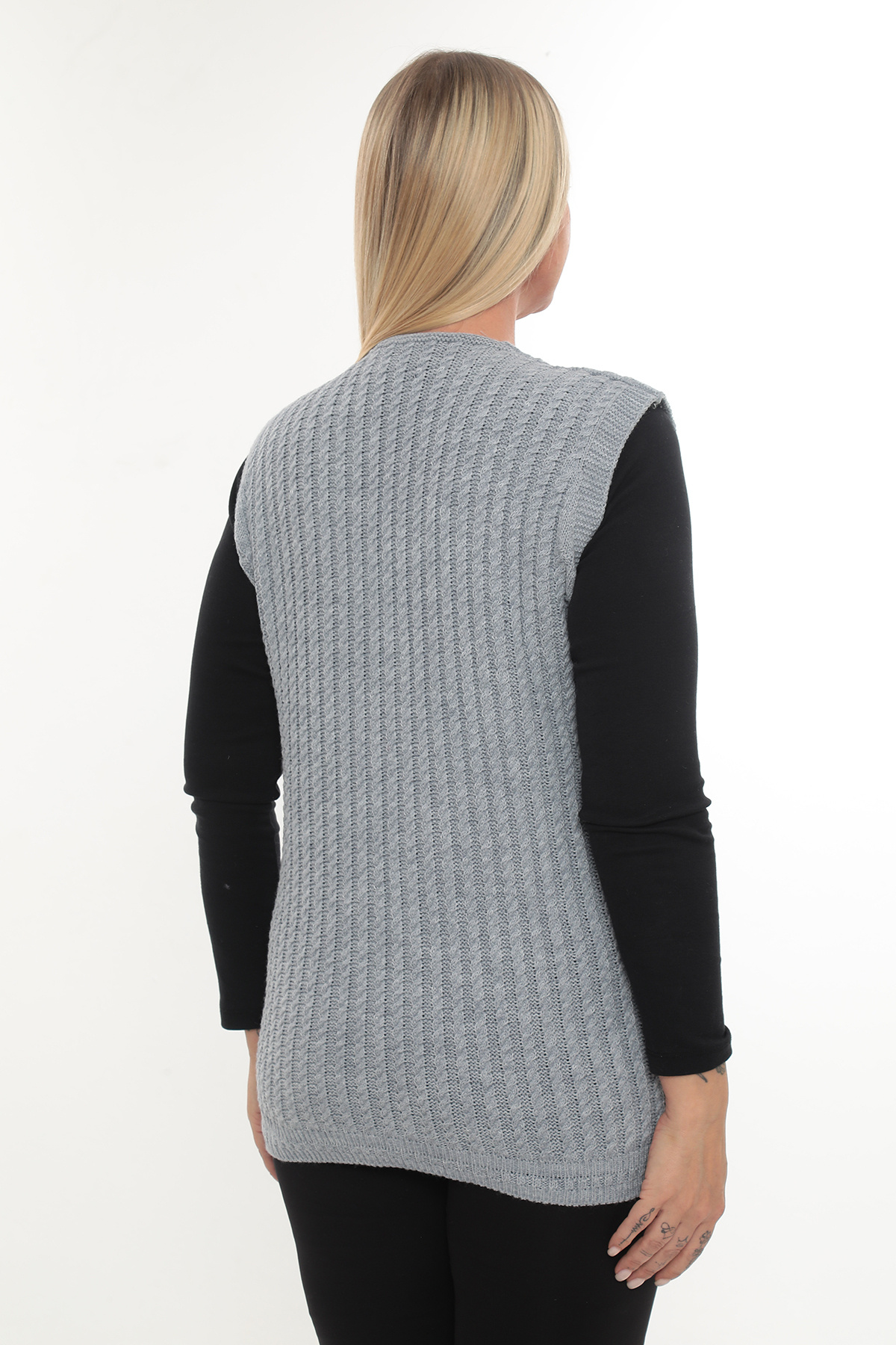Kadın V Yaka Kışlık Kalın Yün Saç Örgü Modelli Triko Düğmeli Cepli Anne Yelek Kadın V Yaka Kışlık Kalın Yün Saç Örgü Modelli Triko Düğmeli Cepli Anne Yelek SAÇÇÖRGÜİKS Standart