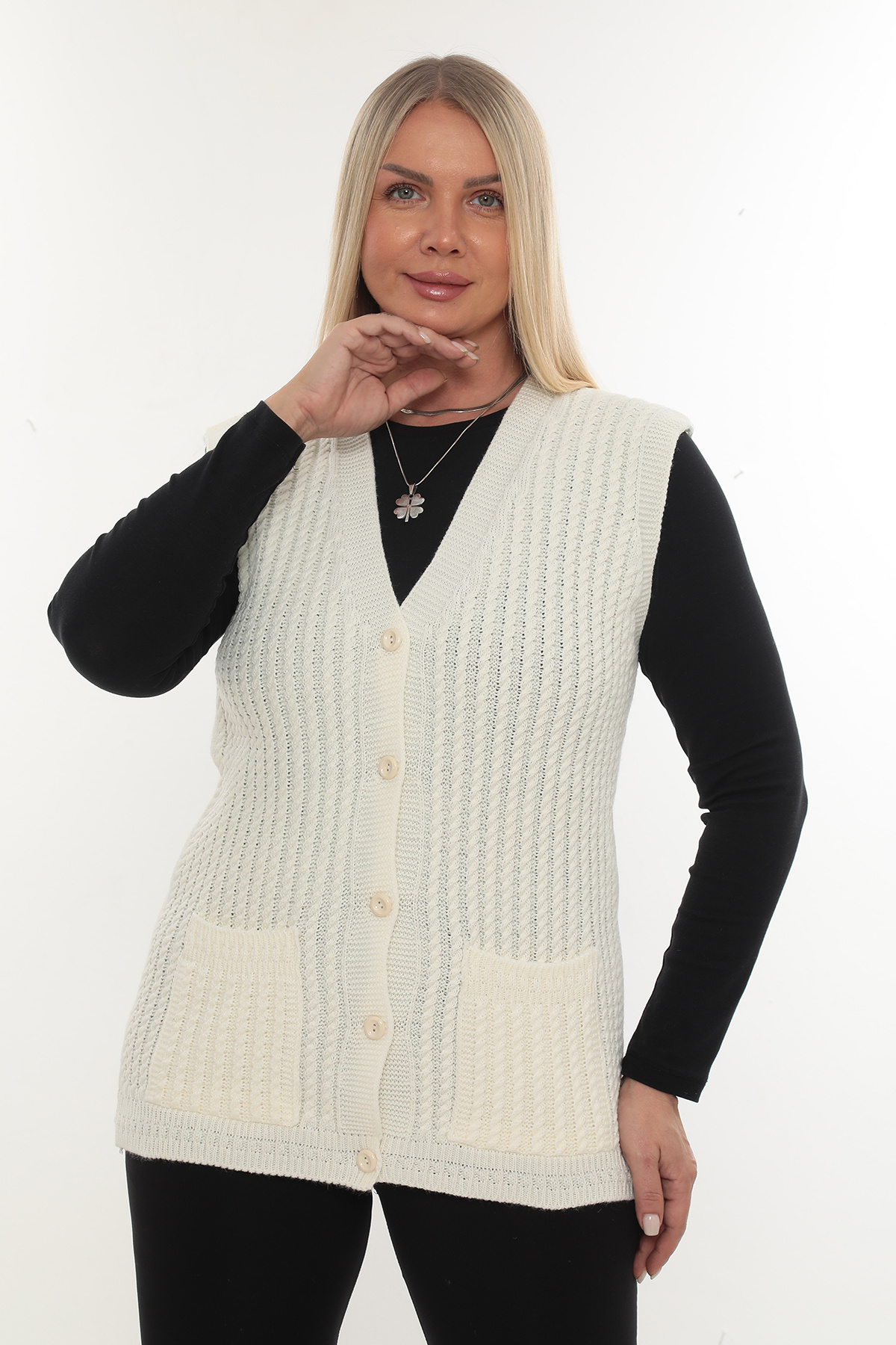 Kadın V Yaka Kışlık Kalın Yün Saç Örgü Modelli Triko Düğmeli Cepli Anne Yelek Kadın V Yaka Kışlık Kalın Yün Saç Örgü Modelli Triko Düğmeli Cepli Anne Yelek SAÇÇÖRGÜİKS Standart