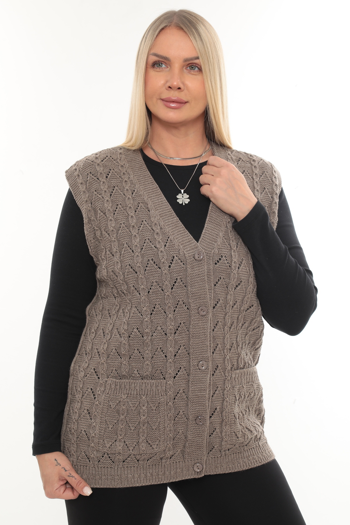 Kadın V Yaka Kışlık Kalın Yün Zincir Modelli Triko Düğmeli Cepli Anne Yelek Kadın V Yaka Kışlık Kalın Yün Zincir Modelli Triko Düğmeli Cepli Anne Yelek AJURRİKS Standart