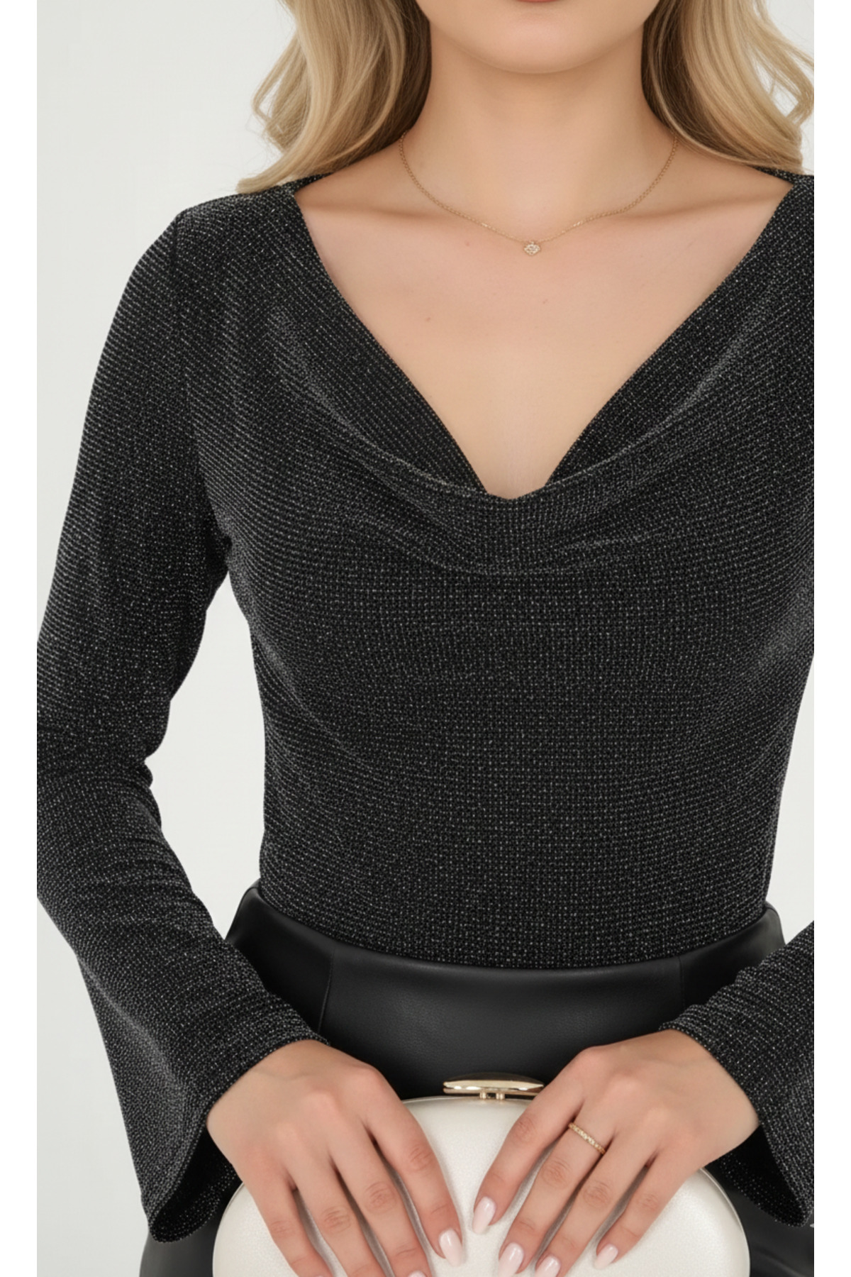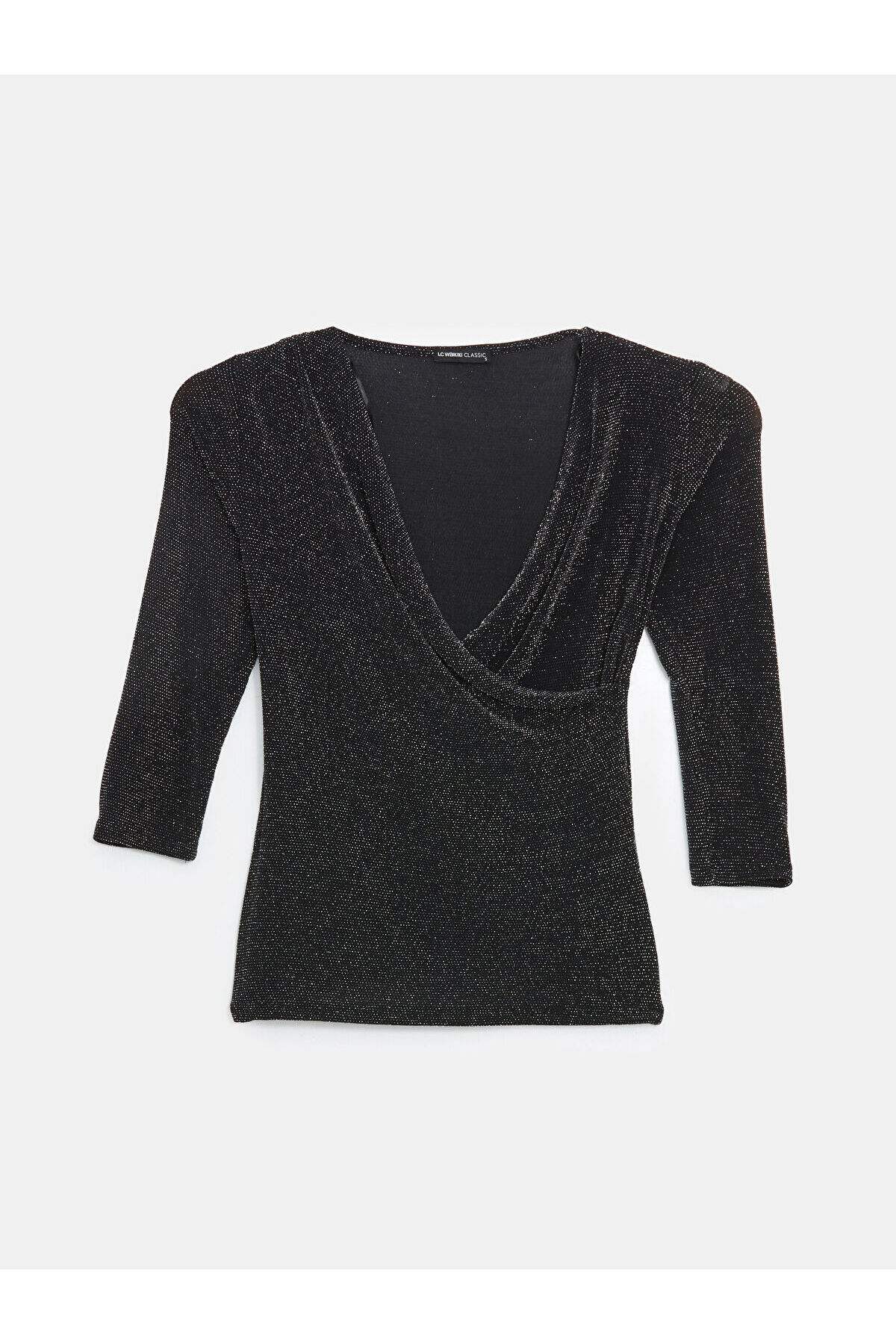 Kruvaze Yaka Parlak Görünümlü Kadın Bluz Kruvaze Yaka Parlak Görünümlü Kadın Bluz TYCC3EDD2E20B19A6403C7200 4XL