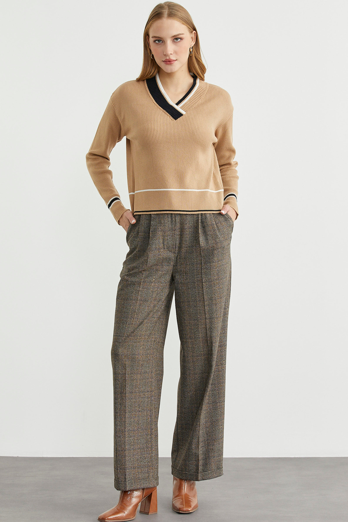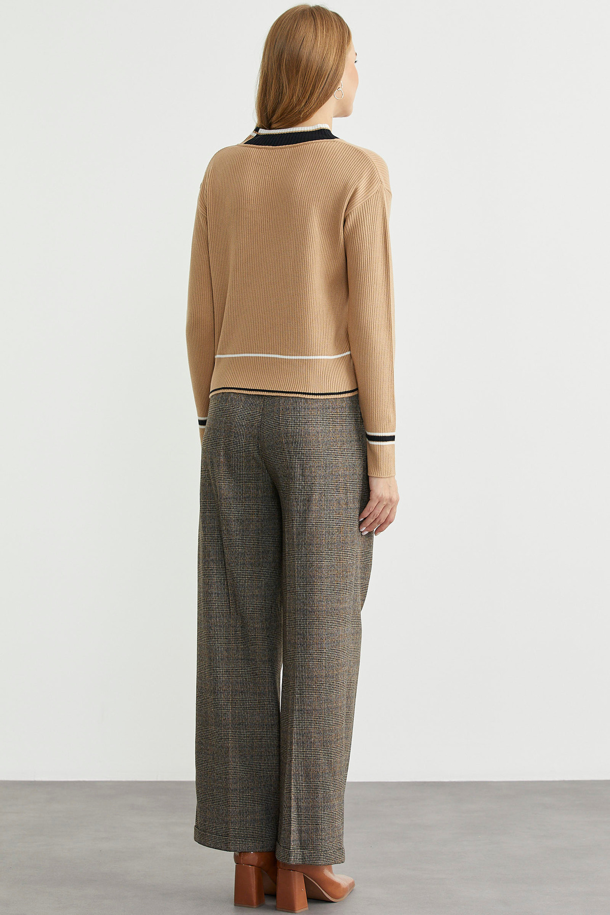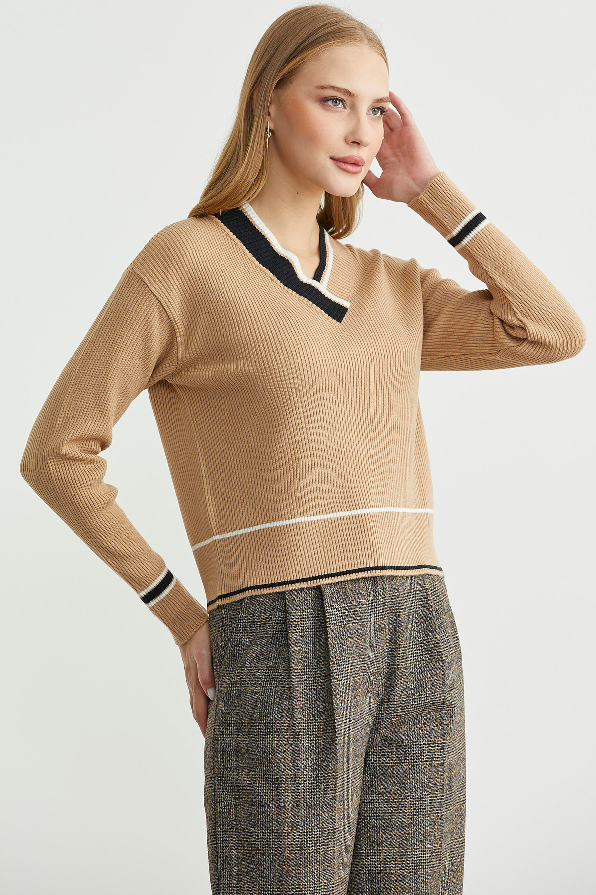 Blok Renk Kombinli Triko Kazak - Kamel Blok Renk Kombinli Triko Kazak - Kamel 25K2115-32589.0001 M