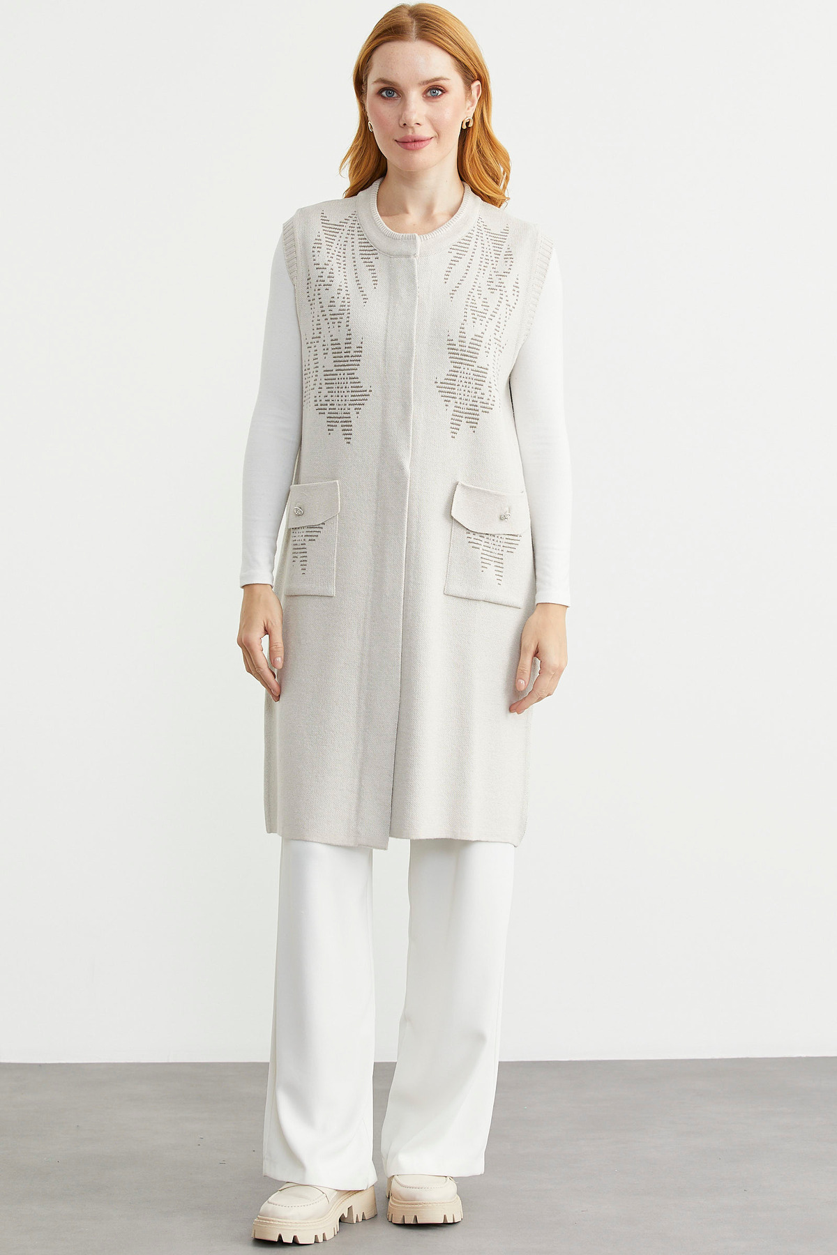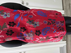 Renkli Çiçek Motifli Yünlü Uzun Triko Yelek - Kırmızı Renkli Çiçek Motifli Yünlü Uzun Triko Yelek - Kırmızı 25K2133-34542.0001 L