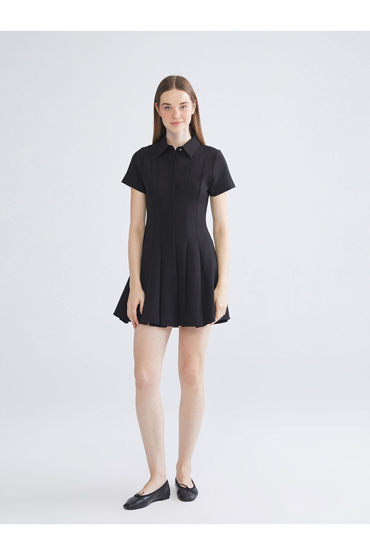 Kahverengi Gömlek Yaka Pileli Mini Elbise Kahverengi Gömlek Yaka Pileli Mini Elbise W5J420Z8 3XL