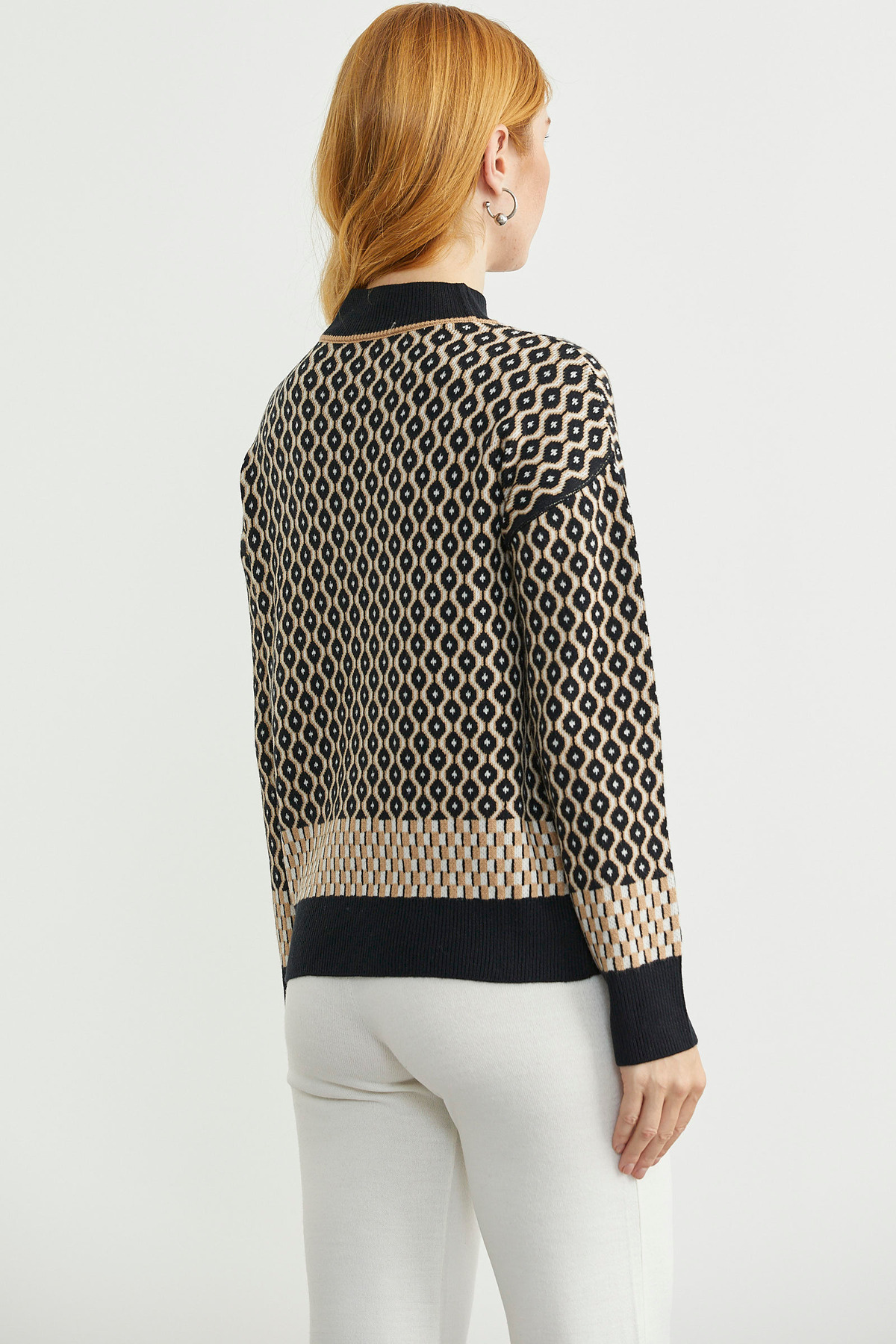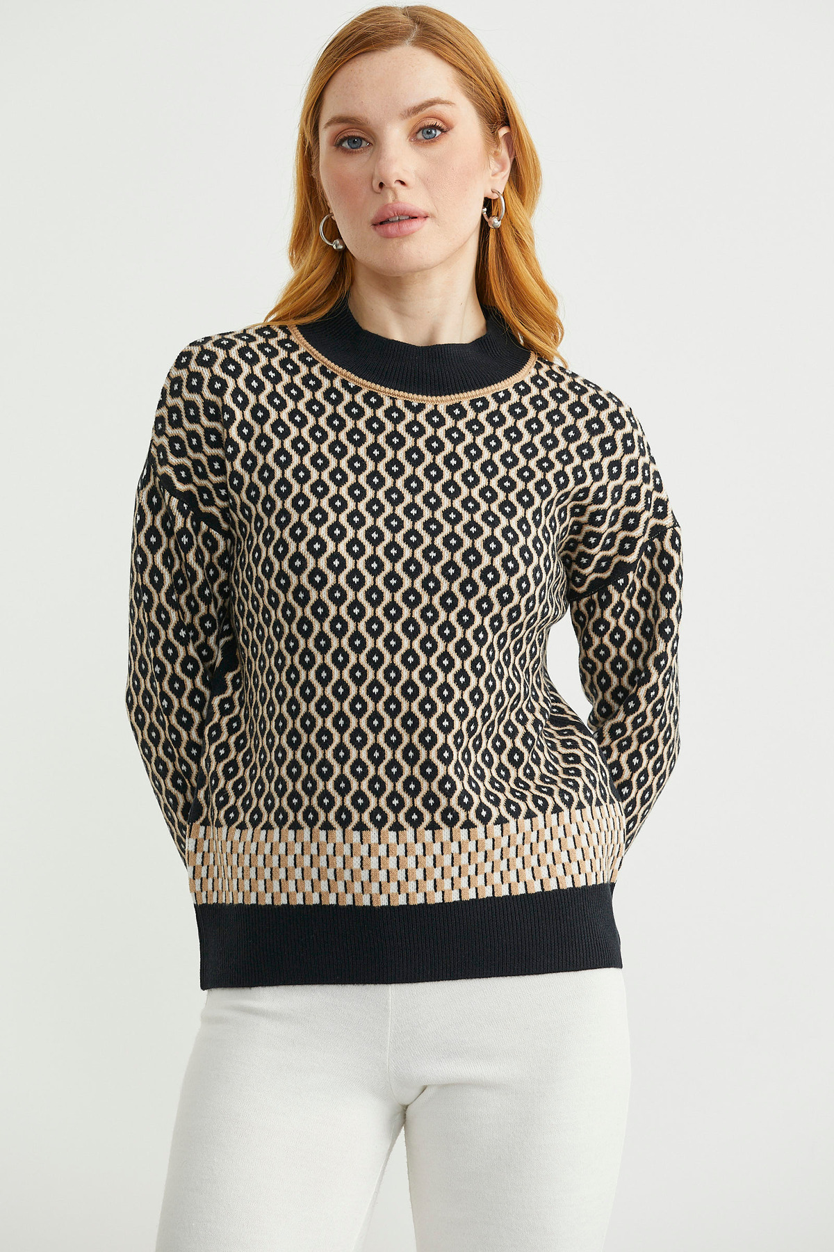 Yarım Balıkçı Renk Motifli Triko Kazak - Siyah Yarım Balıkçı Renk Motifli Triko Kazak - Siyah 25K2115-32602.0001 M
