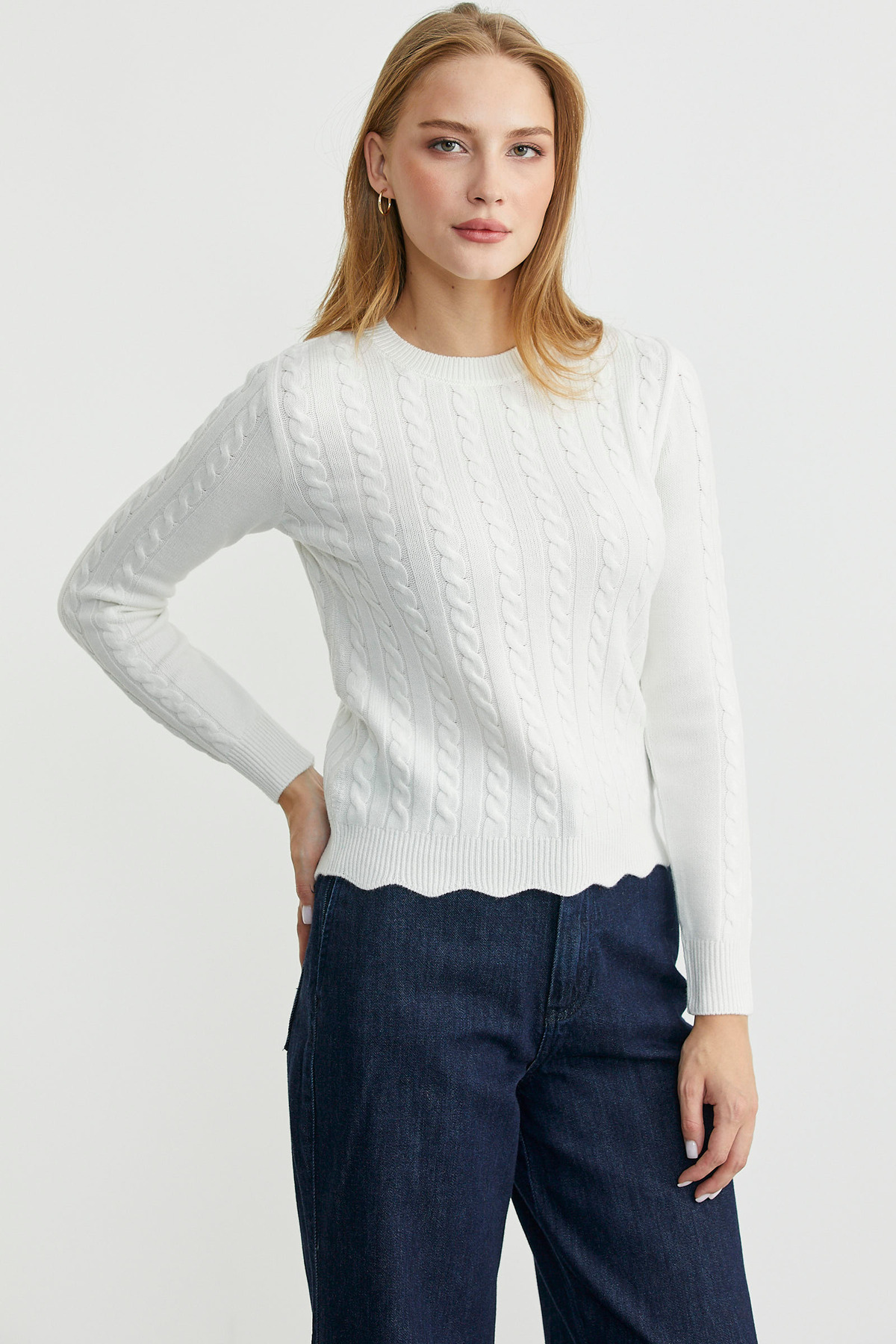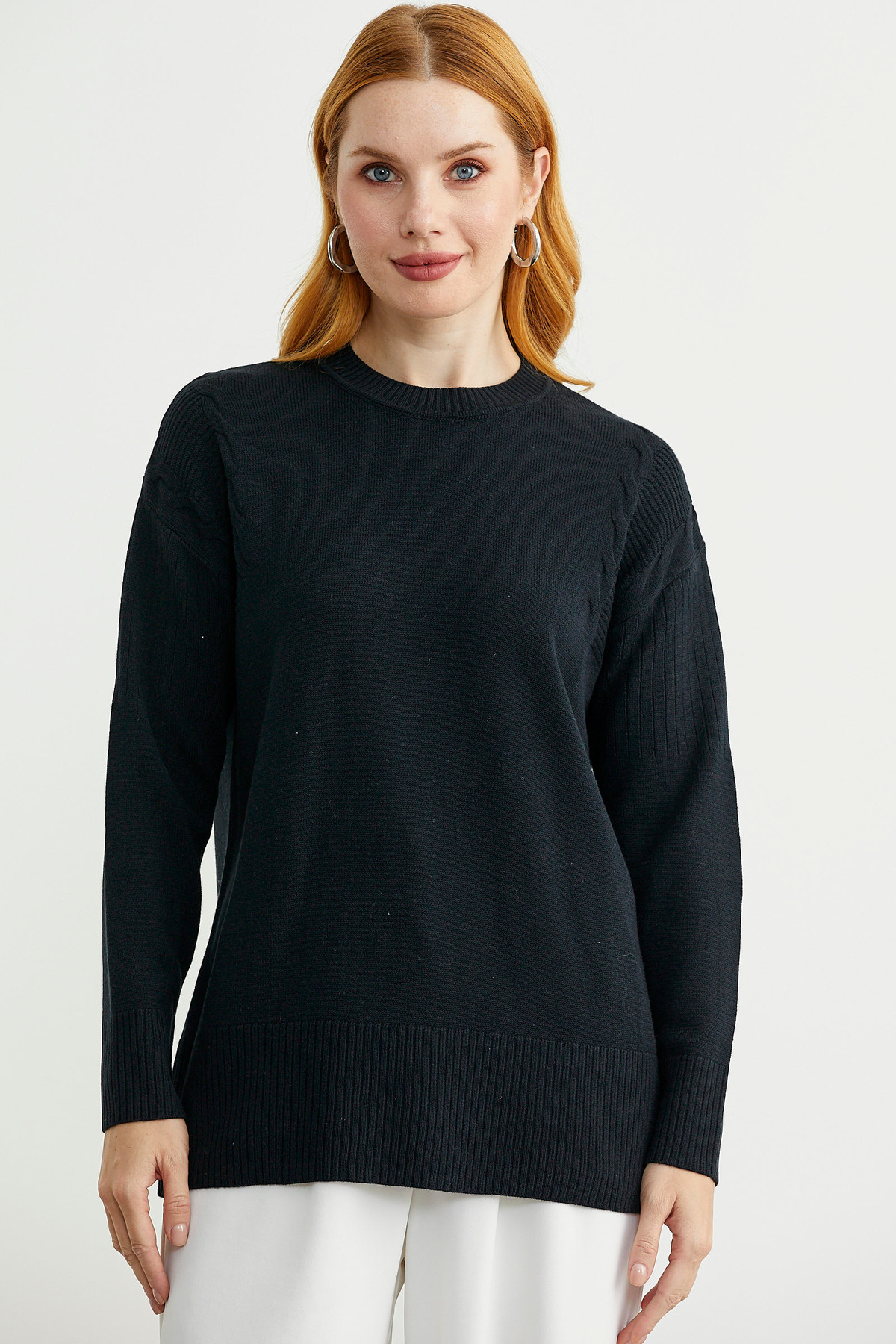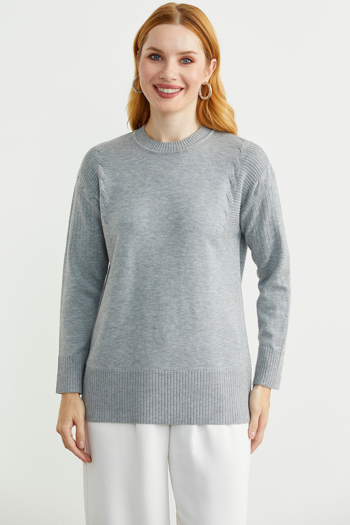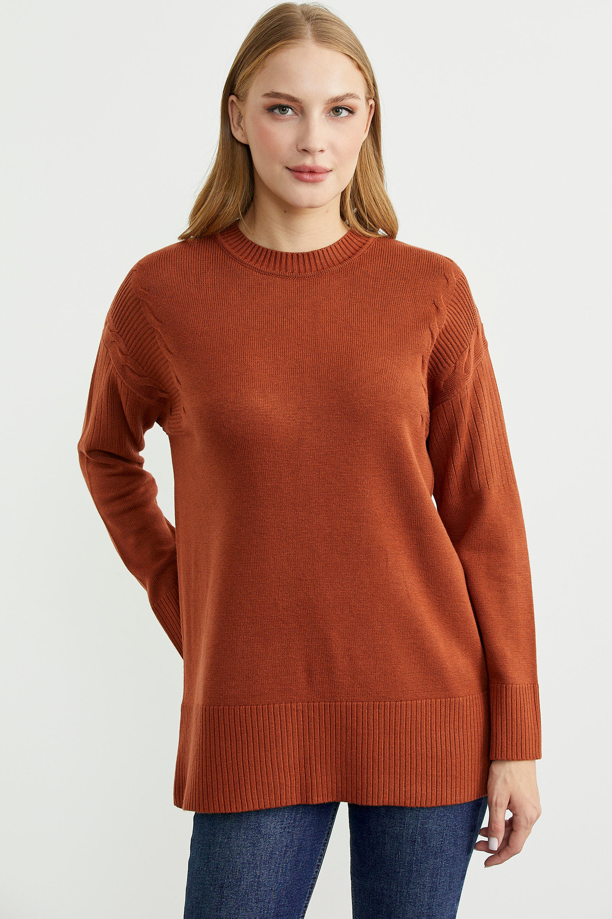 Kol Detaylı Sıfır Yaka Tunik Triko Kazak - Kemik Kol Detaylı Sıfır Yaka Tunik Triko Kazak - Kemik 25K2115-32601.0001 M