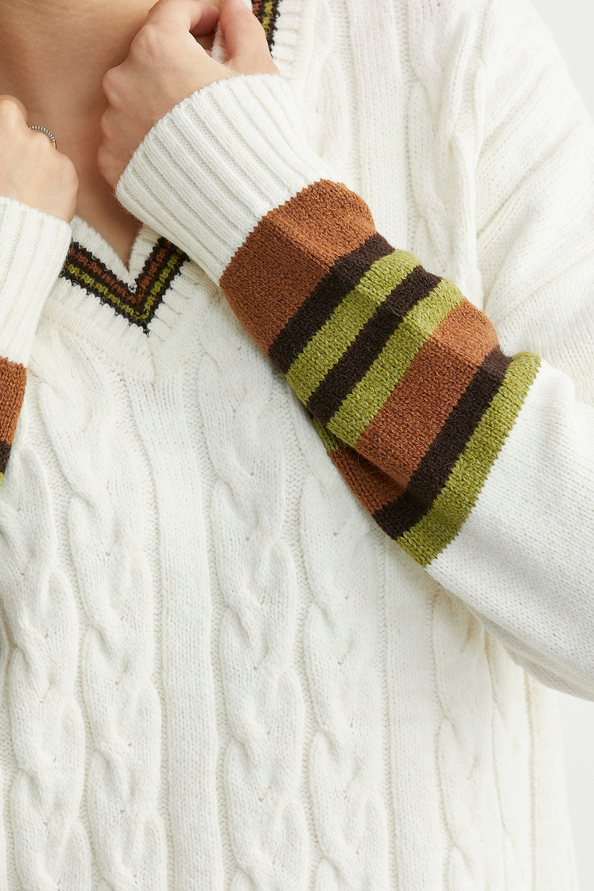 V Yaka Saç Örgülü Triko Kazak - Kemik V Yaka Saç Örgülü Triko Kazak - Kemik 25K2115-32599.0001 L