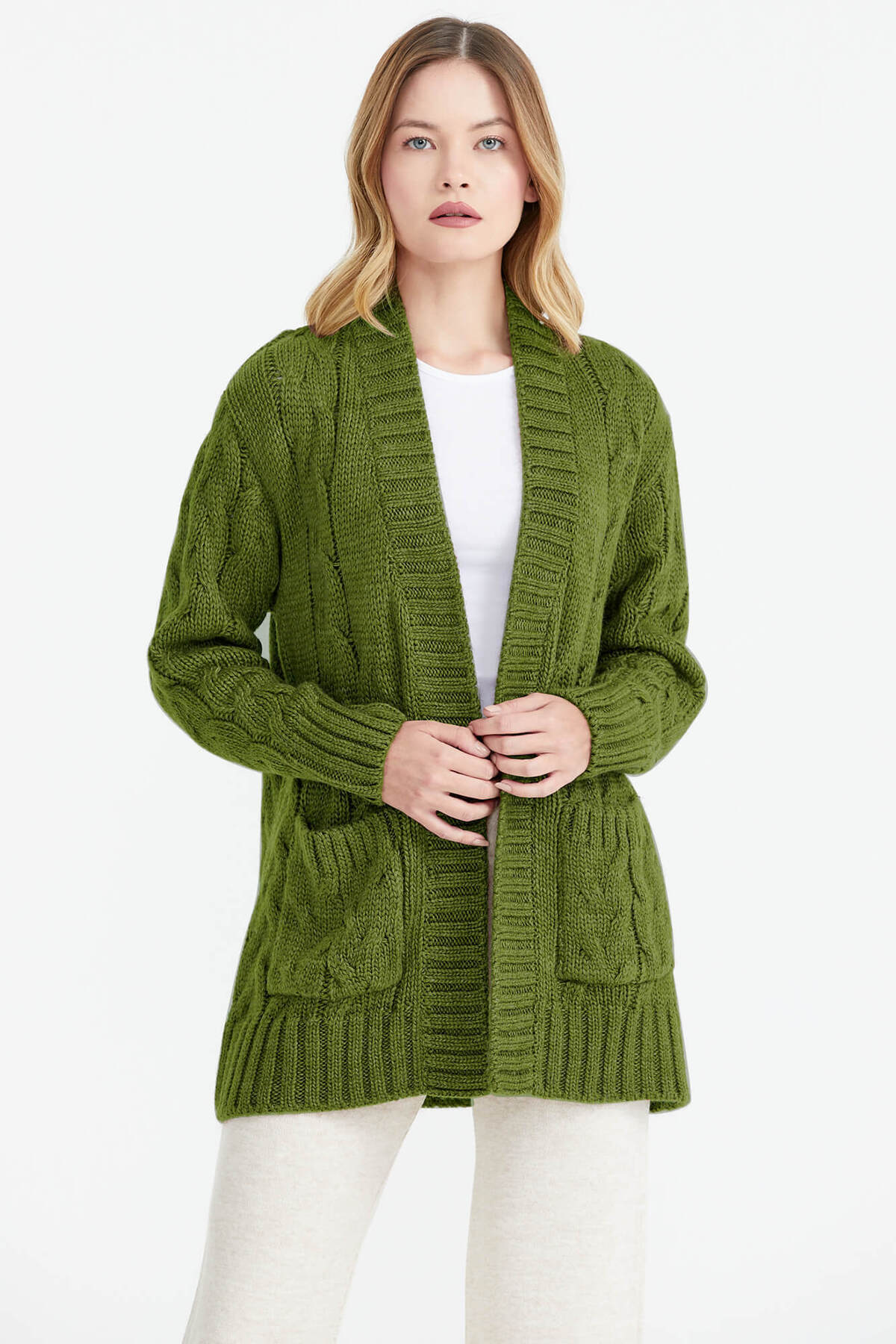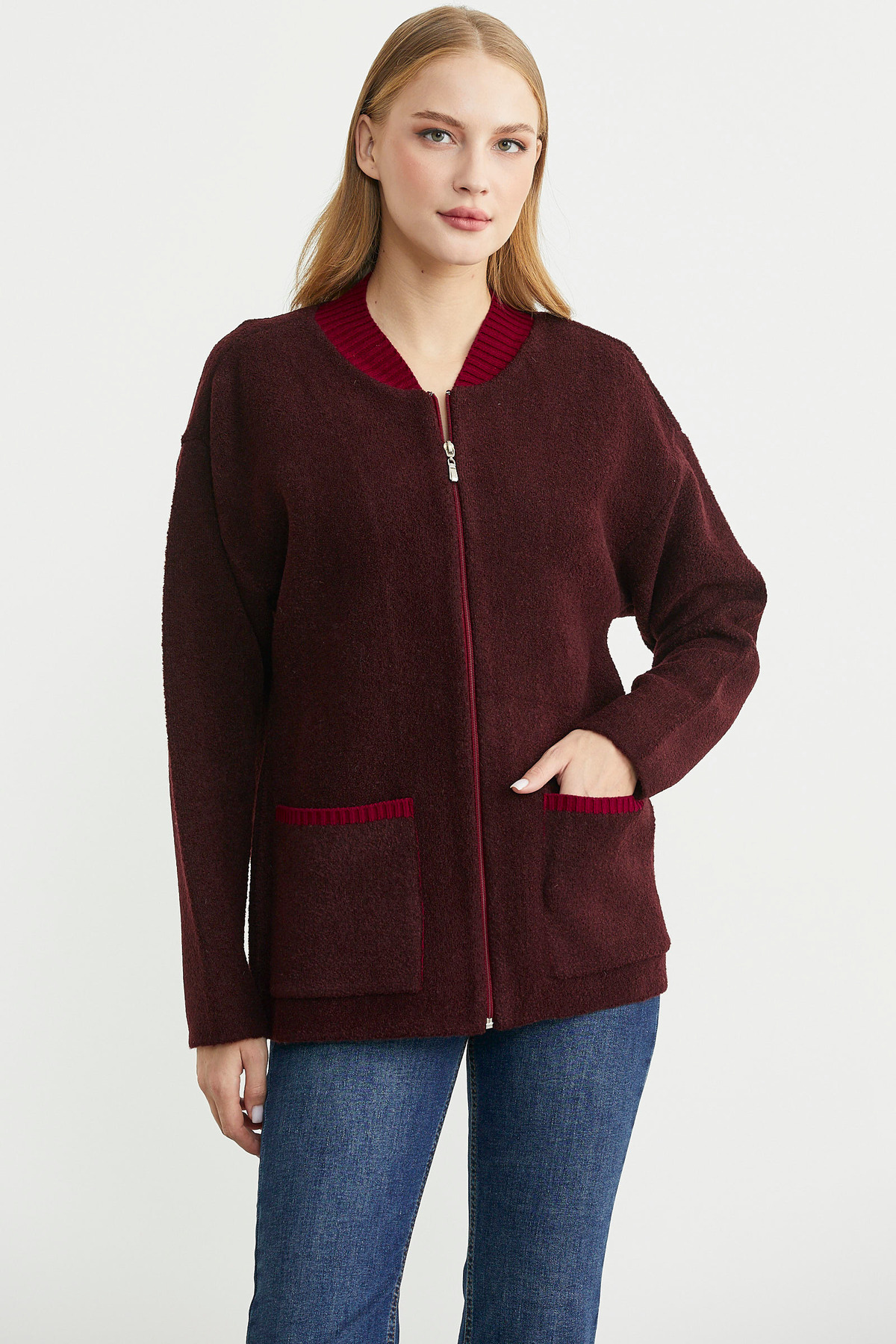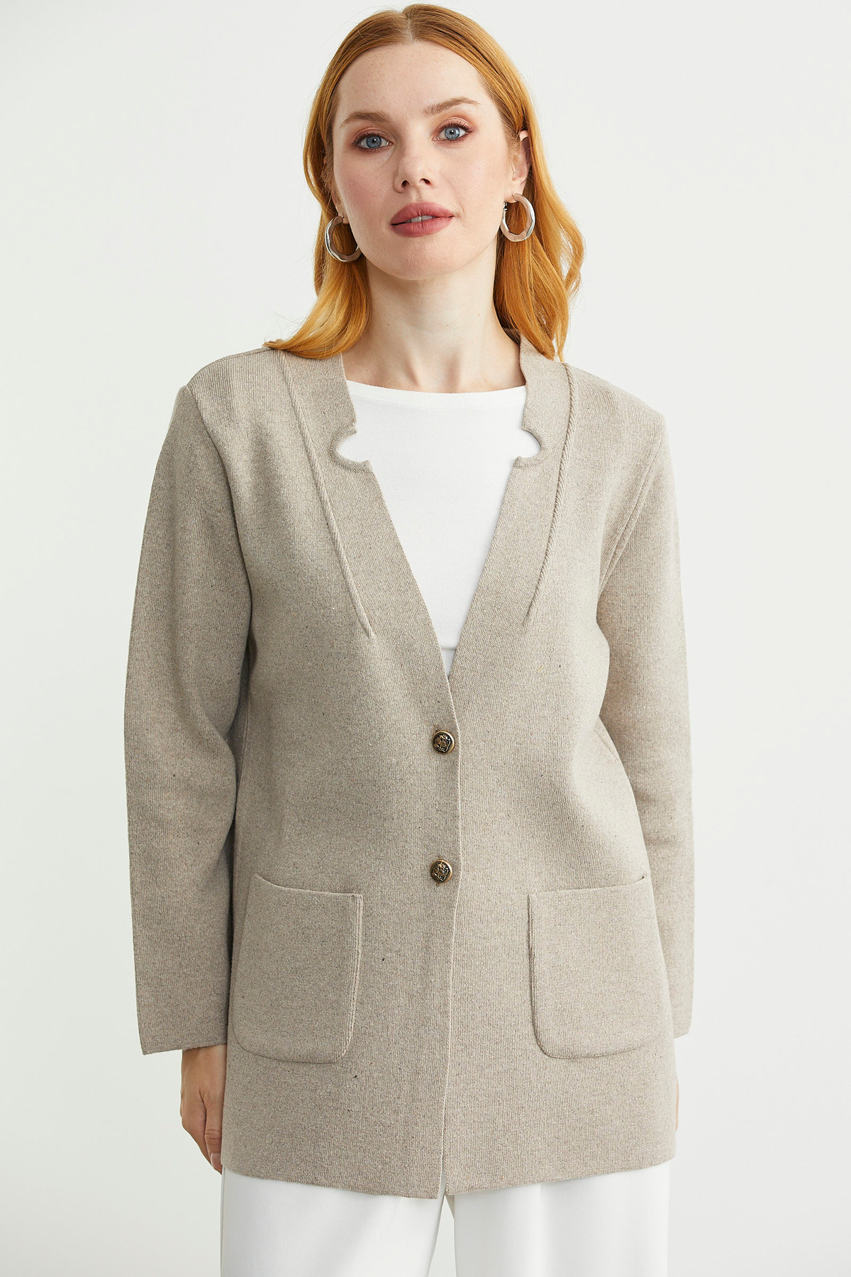 Fermuarlı Cep Detaylı Yünlü Triko Ceket - Bej Fermuarlı Cep Detaylı Yünlü Triko Ceket - Bej 24K2104-34535.0001 XL
