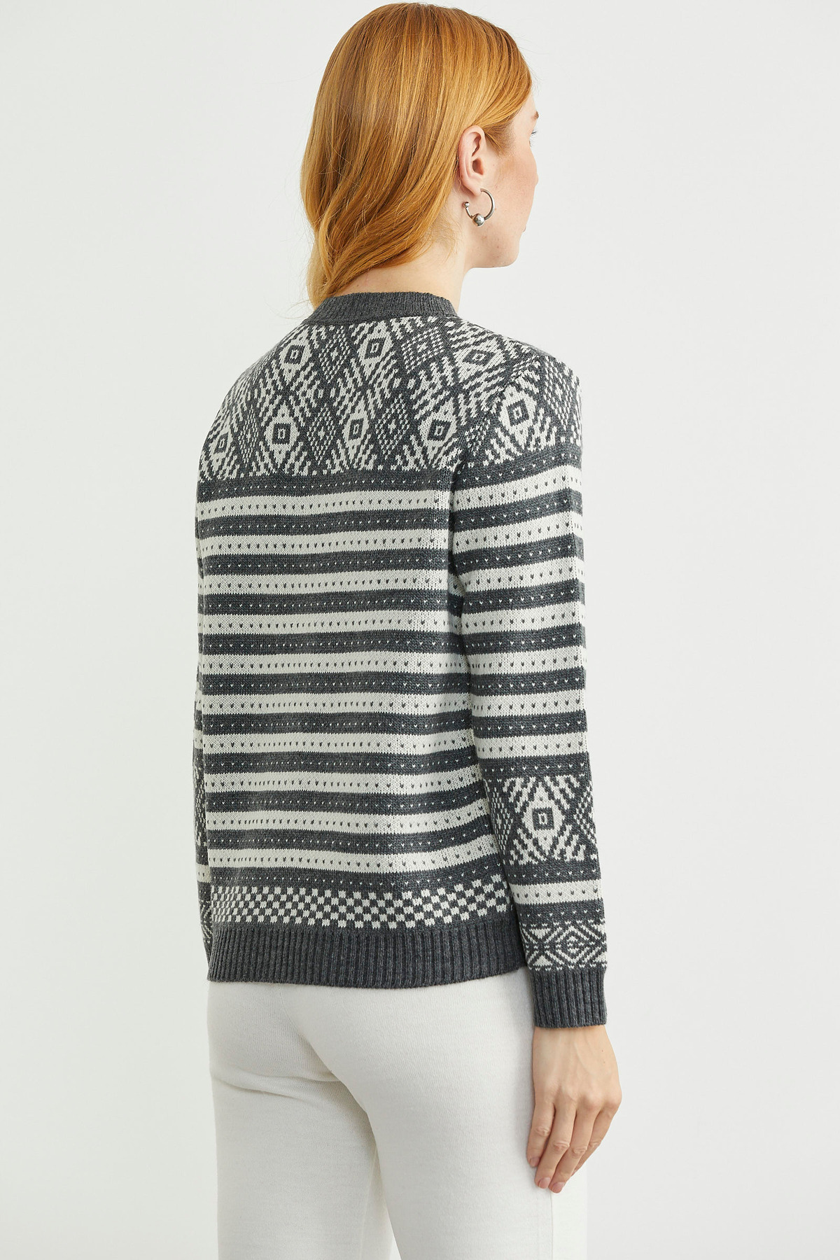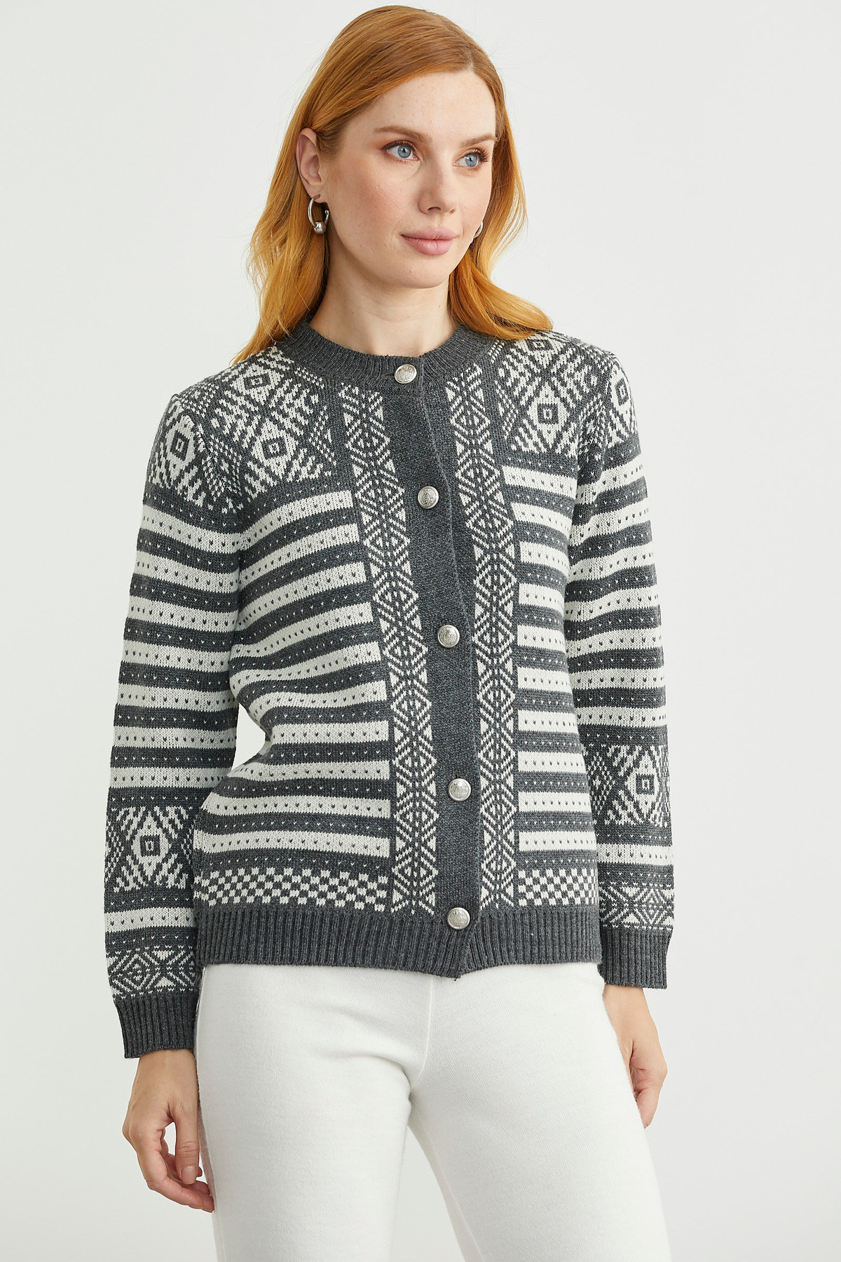 Metal Düğmeli Çizgili Yünlü Triko Hırka - Antrasit Metal Düğmeli Çizgili Yünlü Triko Hırka - Antrasit 25K2112-34527.0001 L