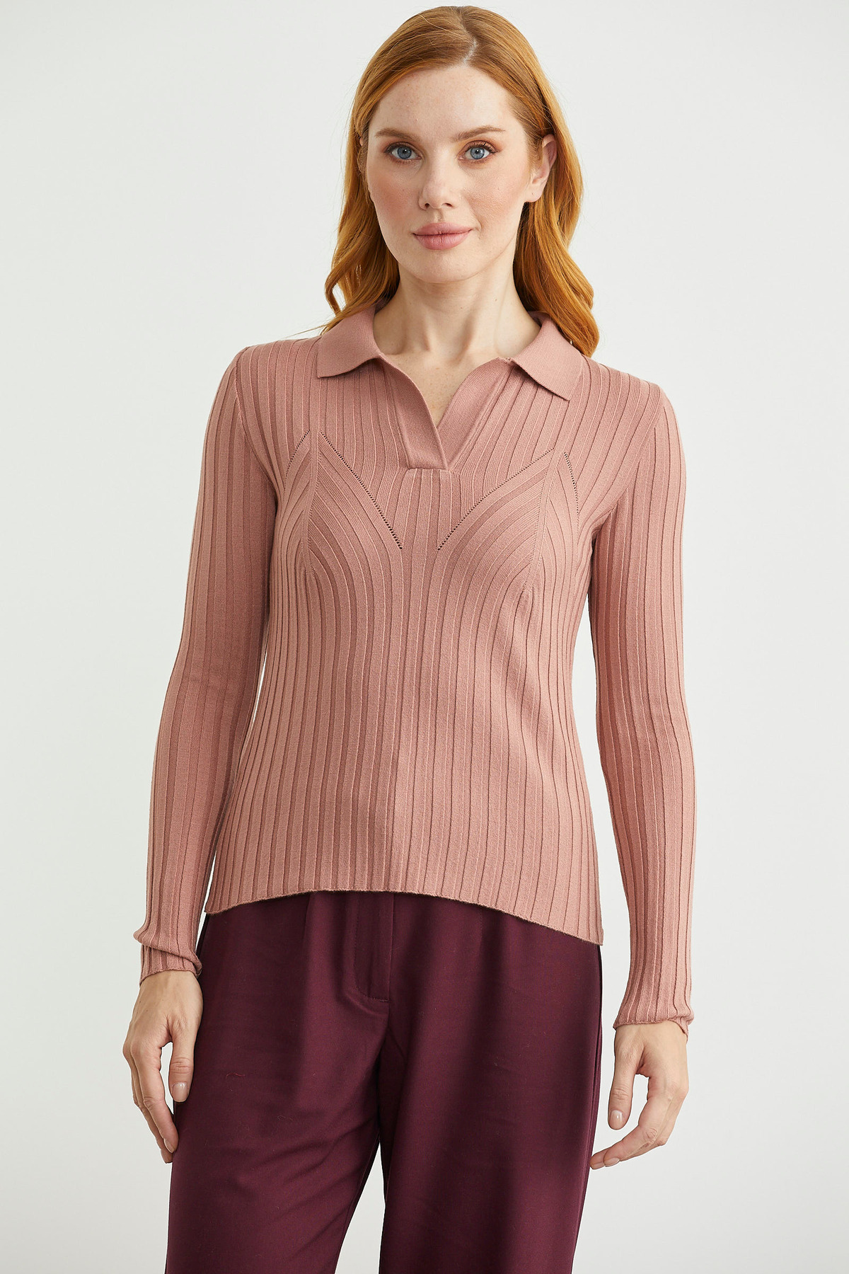 Polo Yaka Fitilli Triko Kazak - Gül Polo Yaka Fitilli Triko Kazak - Gül 24K2115-32578.0001 M