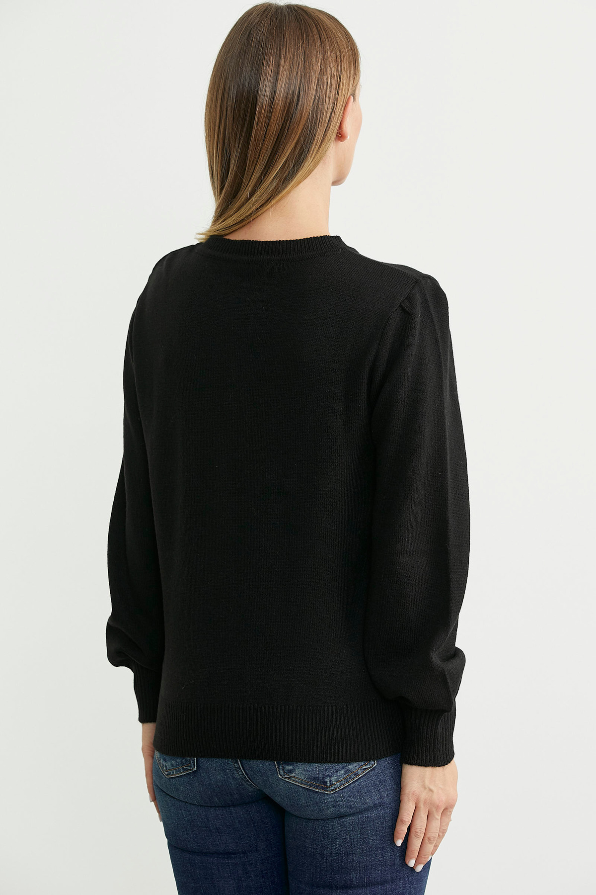 Yarım Düğmeli Yuvarlak Yaka Triko Kazak - Siyah Yarım Düğmeli Yuvarlak Yaka Triko Kazak - Siyah 25K2115-32618.0001 M
