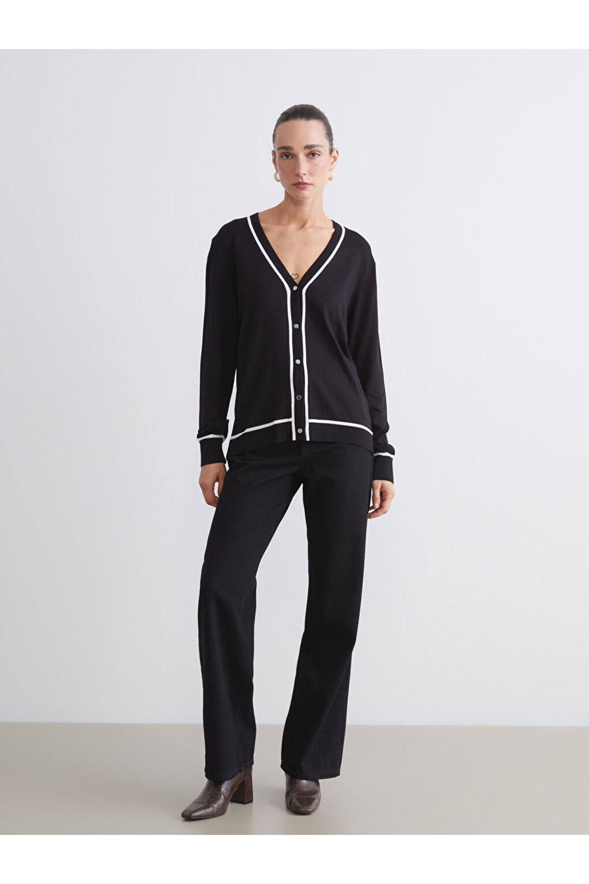 Siyah V Yaka Kadın Triko Hırka Siyah V Yaka Kadın Triko Hırka W5ET60Z8 3XL