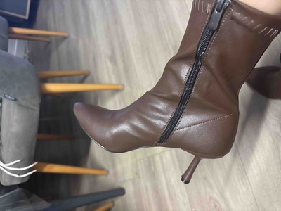 Kadın Acı Kahve Streç Bilekli Orta Boy Topuklu Bot Kadın Acı Kahve Streç Bilekli Orta Boy Topuklu Bot İnce Topuklu 40