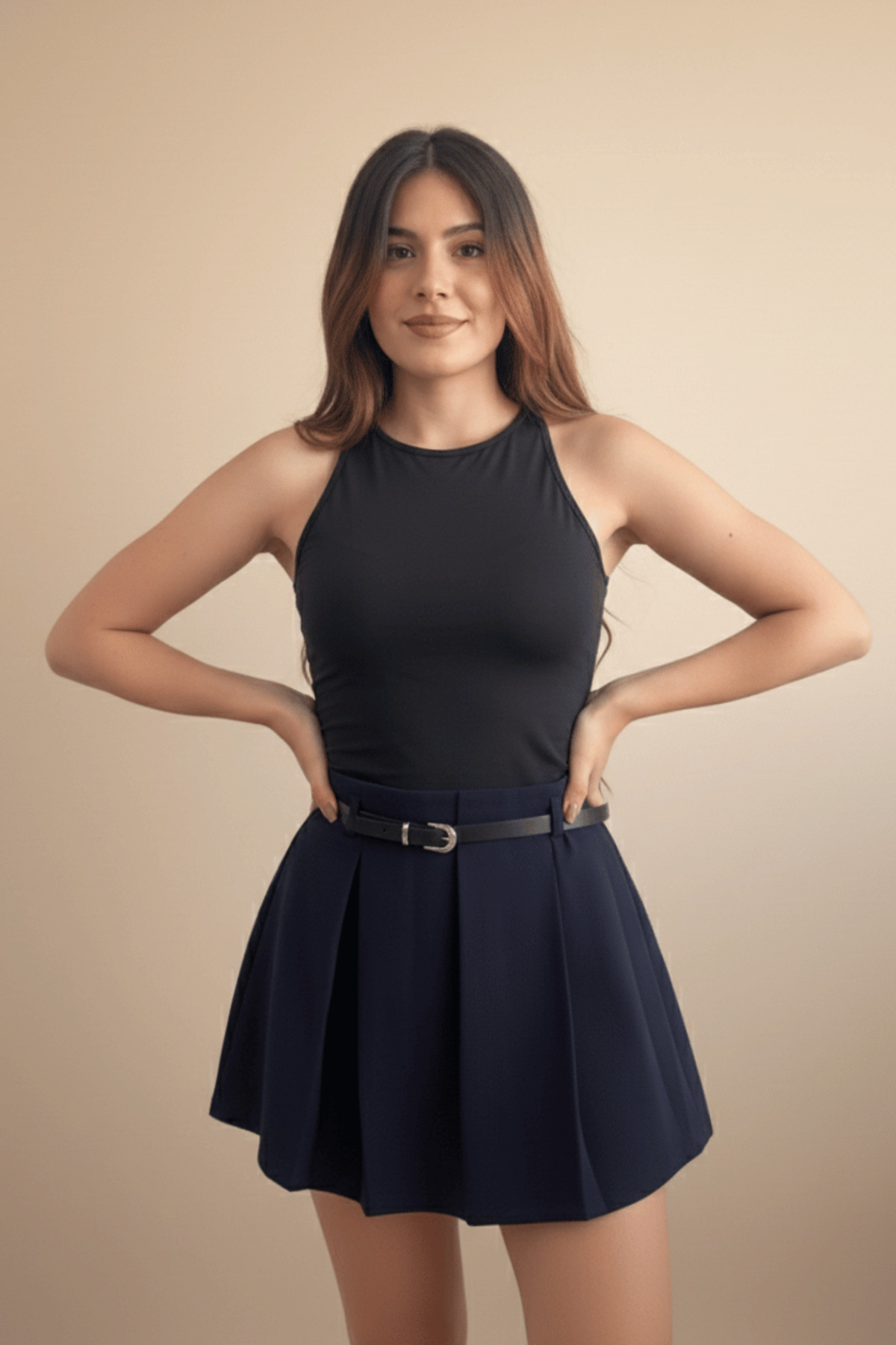 Kemer Detaylı Pileli Mini Şort Etek (Bordo - Siyah - Lacivert) Kemer Detaylı Pileli Mini Şort Etek (Bordo - Siyah - Lacivert) 130701 L