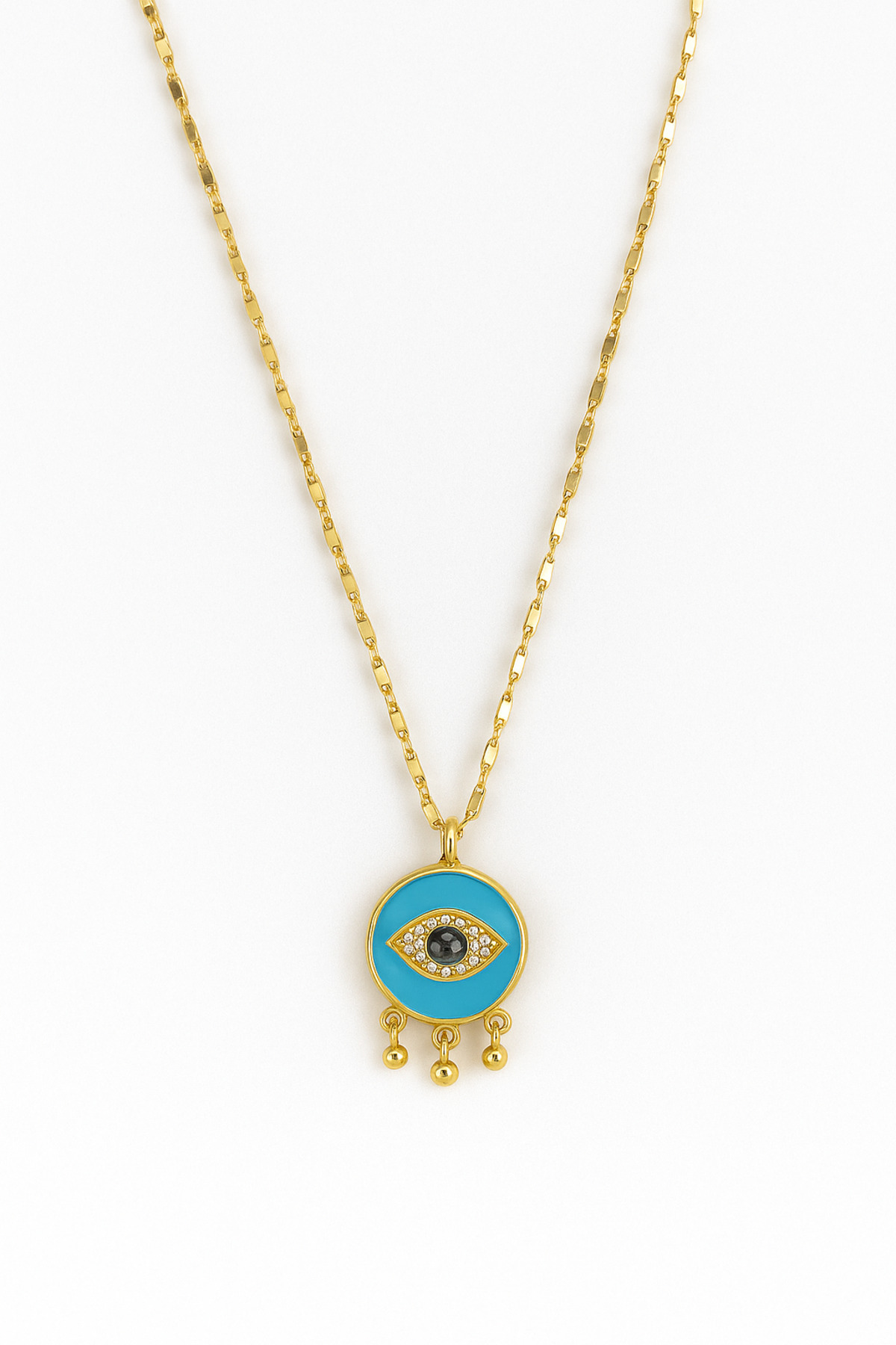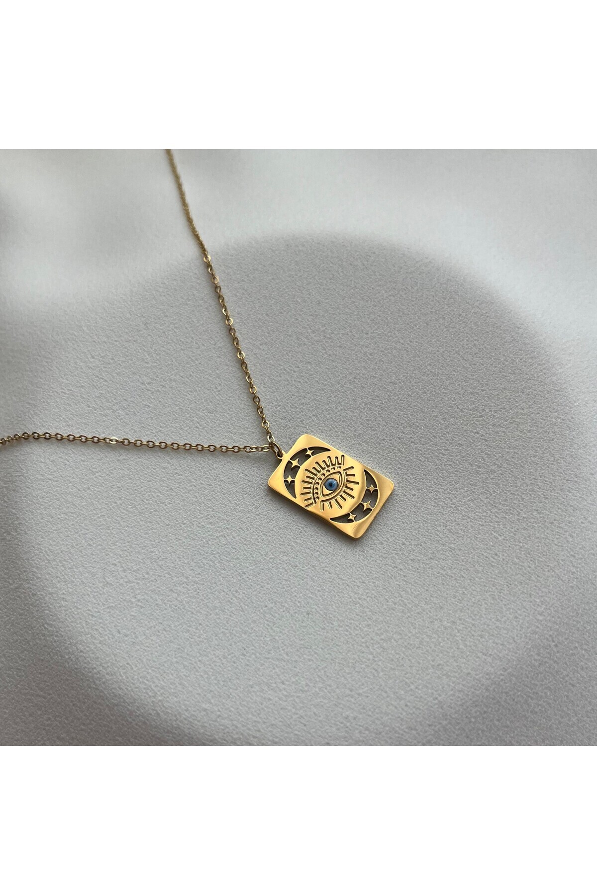 Nazar Boncuklu Göz Motif Gold Çelik Kolye Nazar Boncuklu Göz Motif Gold Çelik Kolye zncrkolye016 Standart